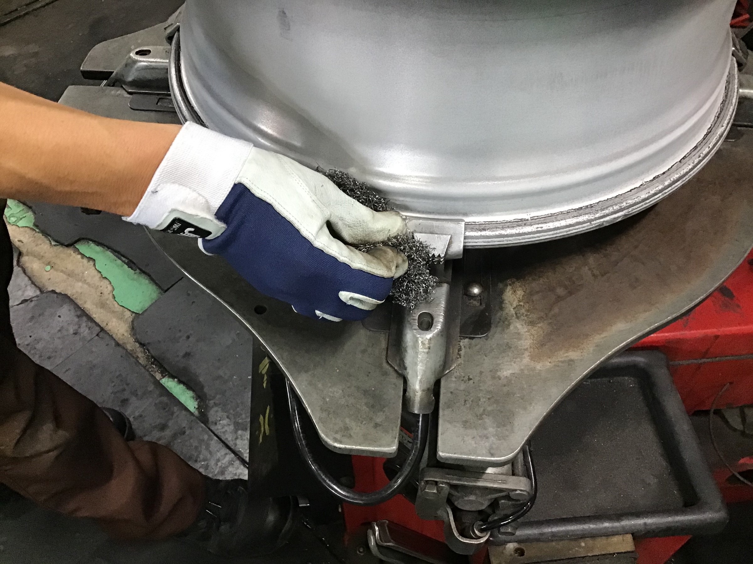 このようにエア漏れの原因となる錆汚れ・腐食を可能な限り落としタイヤとホイールの密着度を高め安心安全に作業を行います。
