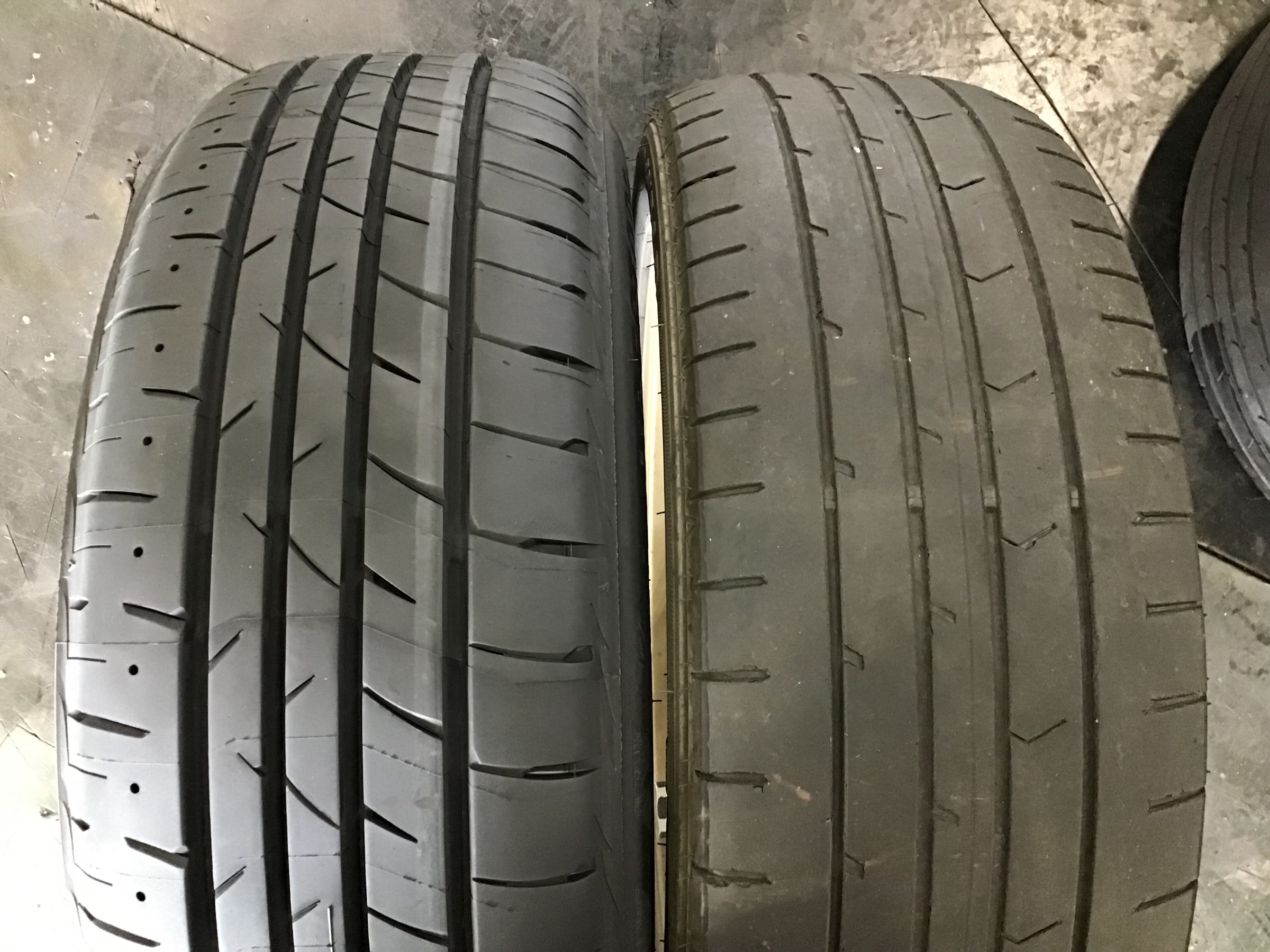 左側が新しいタイヤで右側が今まで履いていたタイヤになります。