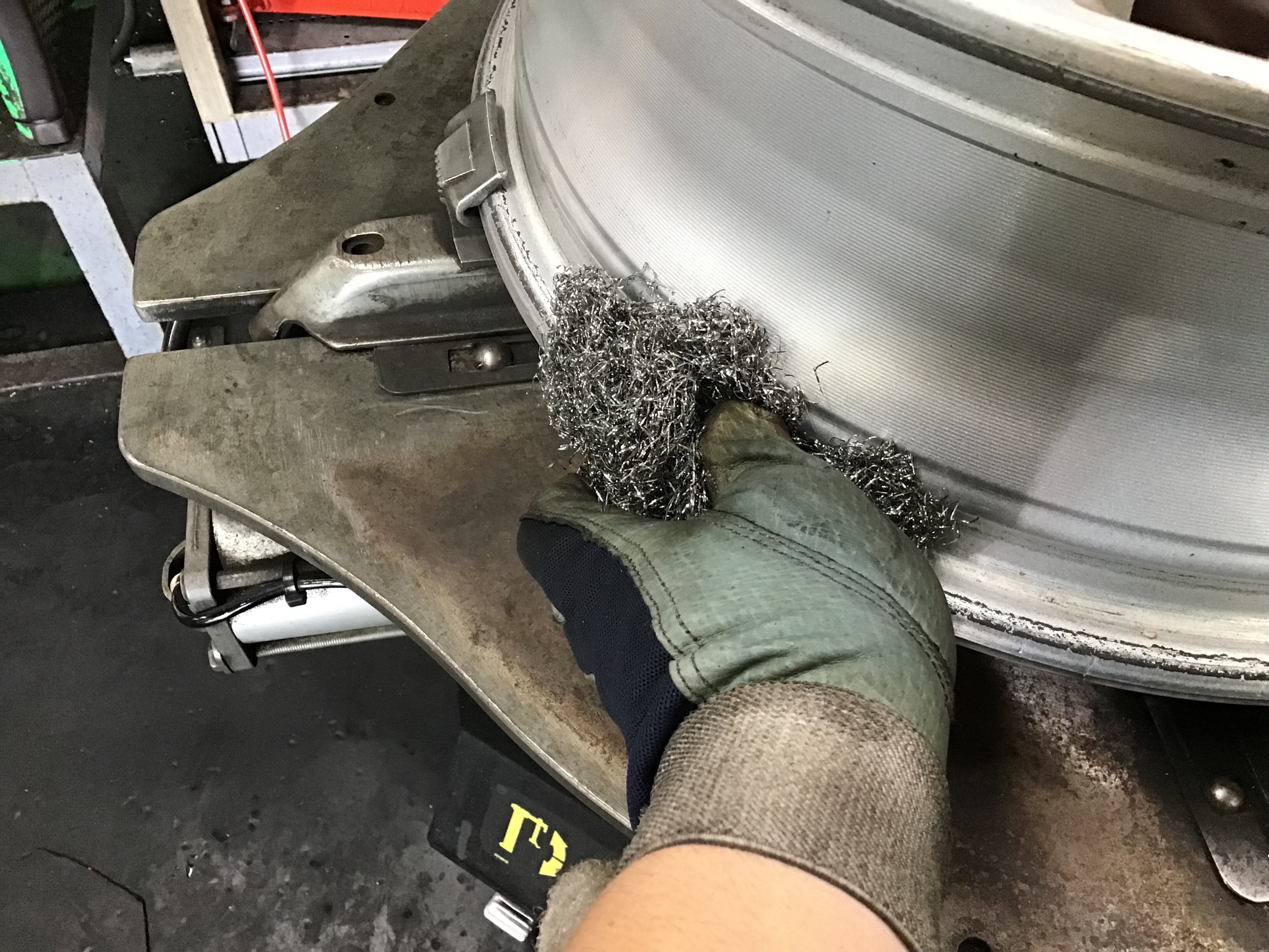 〇タイヤとホイールリム接着部の清掃を行います