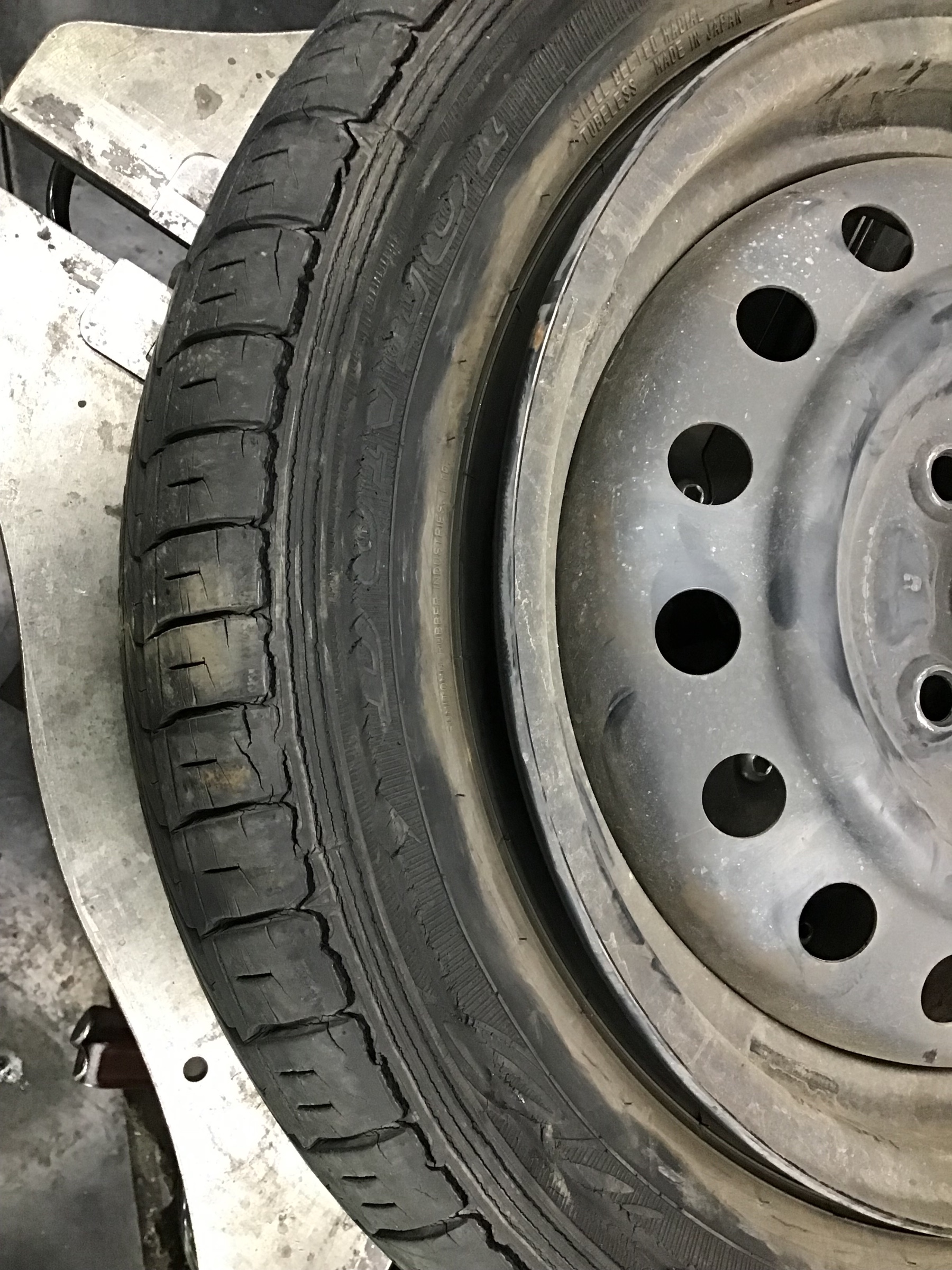 二枚目のお写真は、経年劣化の影響でタイヤの横にヒビが入ってしまっており、要交換の状態