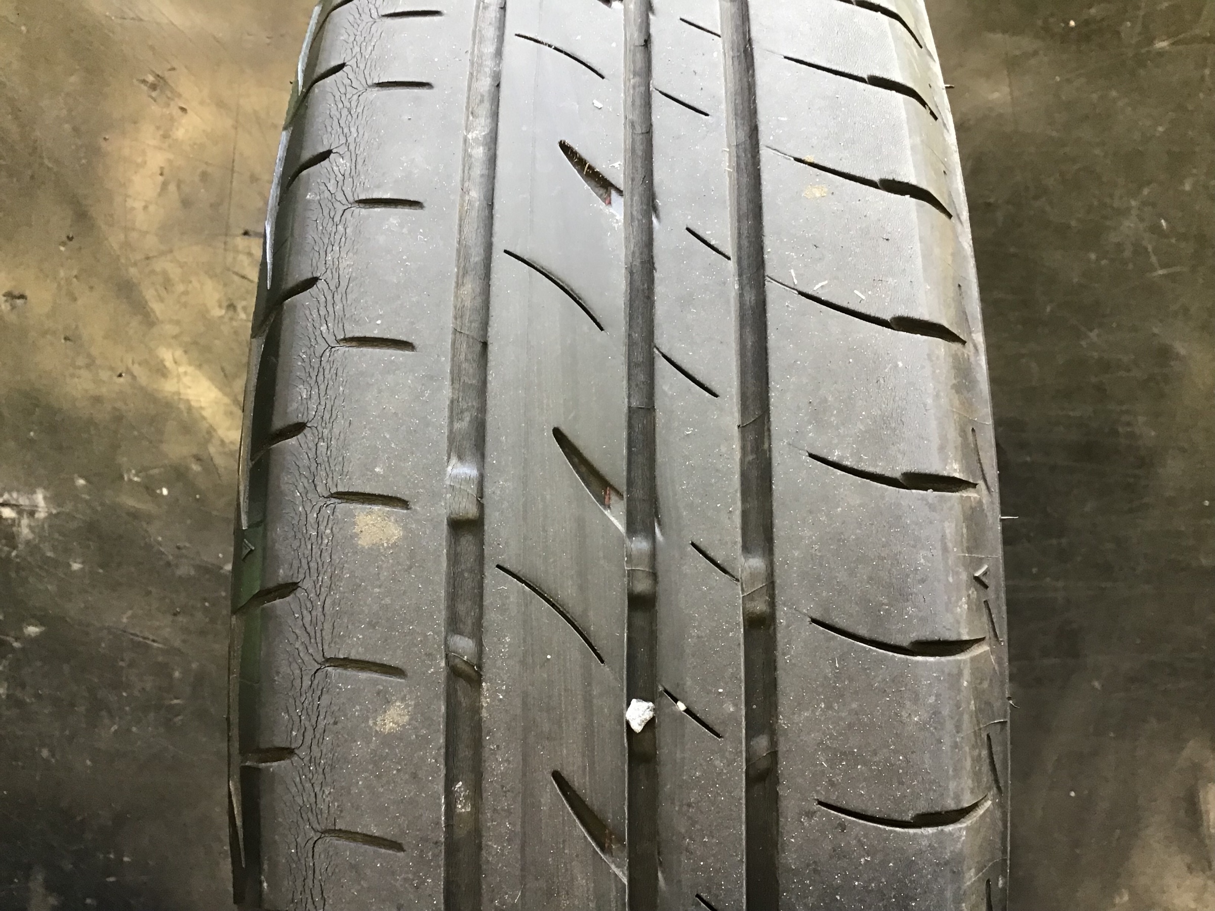 タイヤの溝が減ってしまっており、経年劣化の影響でタイヤの両端にヒビが入ってしまってい
