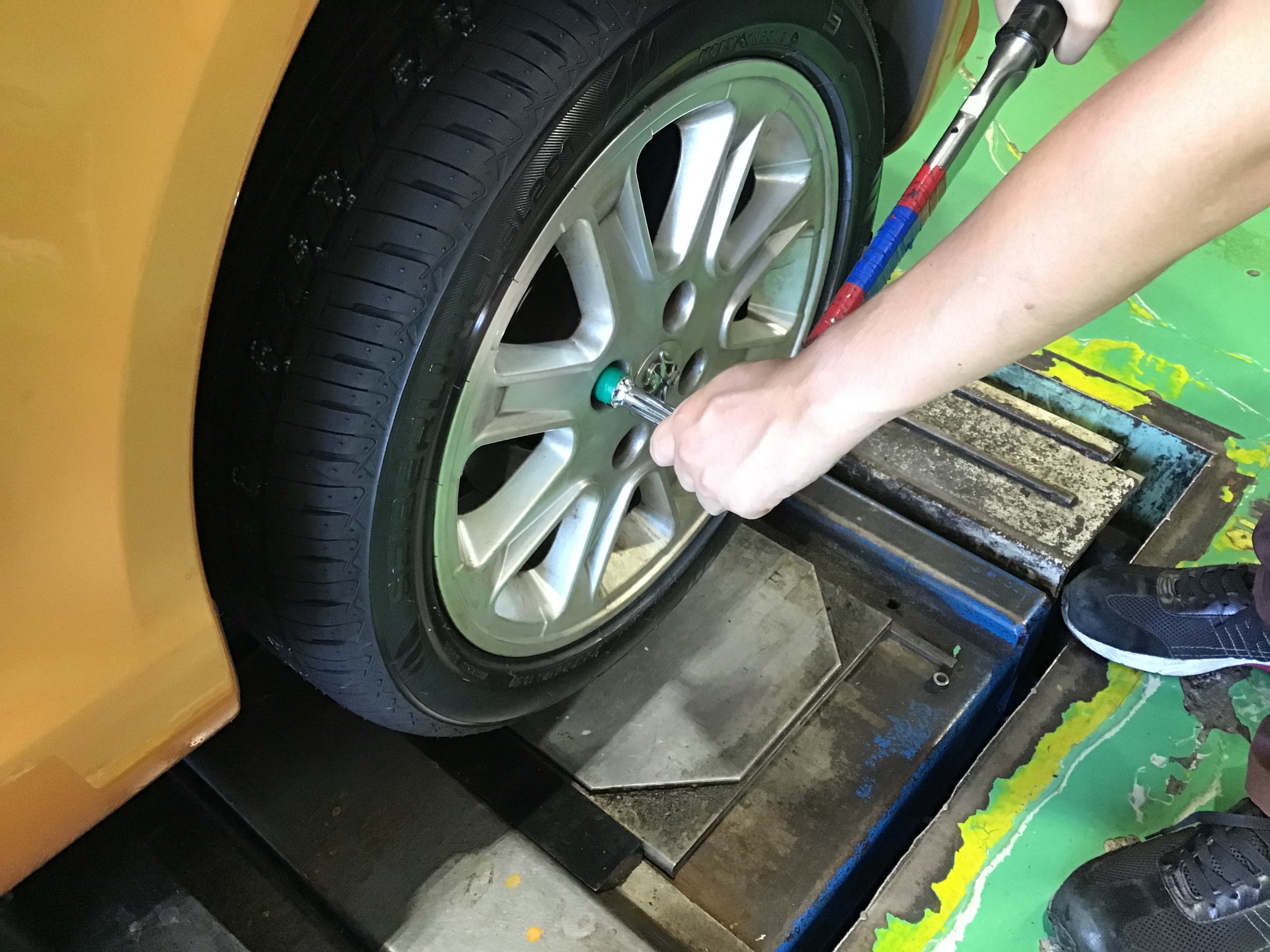 車を降ろしてもう一度トルクレンチを使ってナットの締め付けを確認し終了です