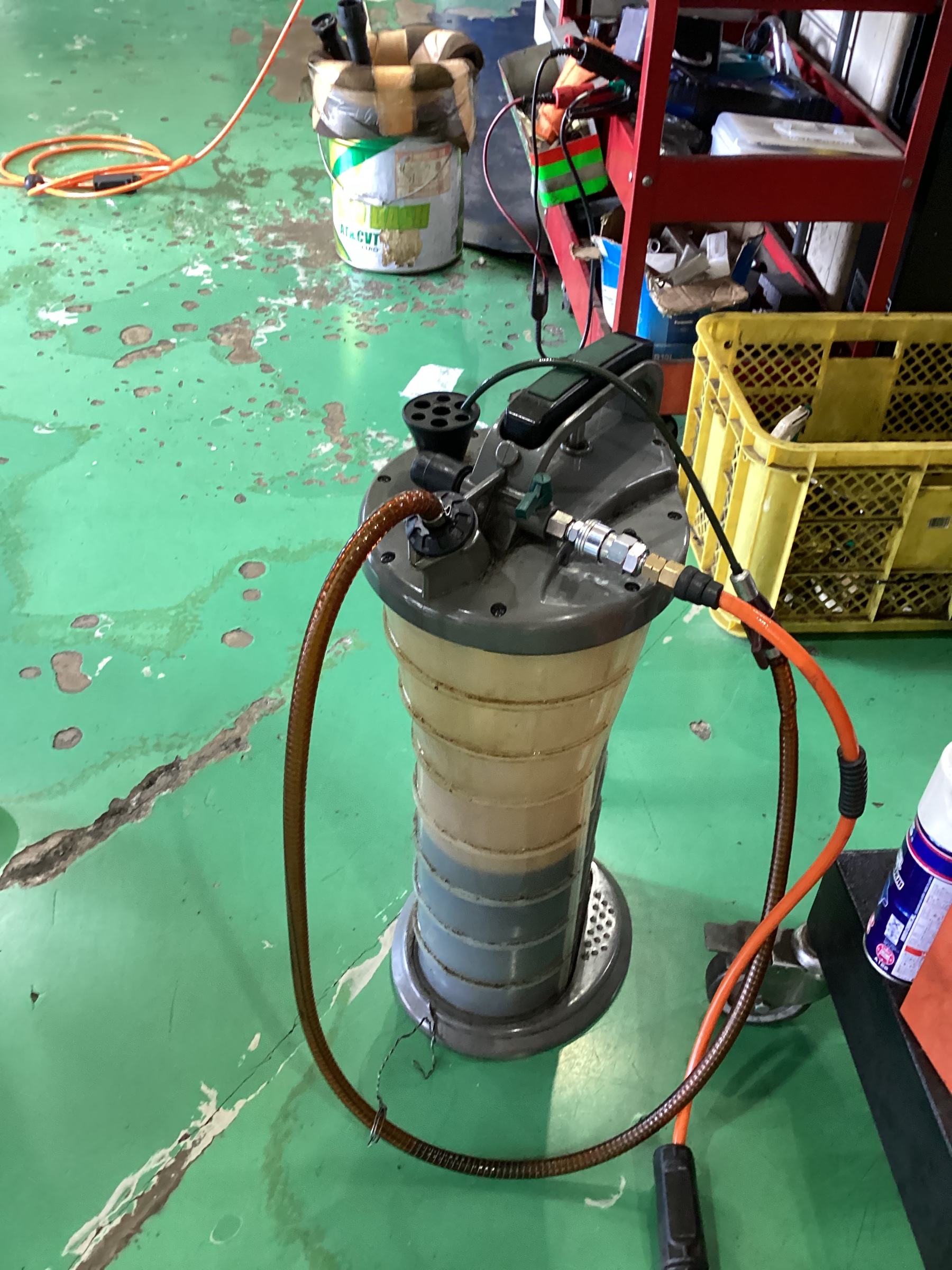 2名体制でオイルエレメント周りからの漏れ確認、オイルゲージでの適量確認、
