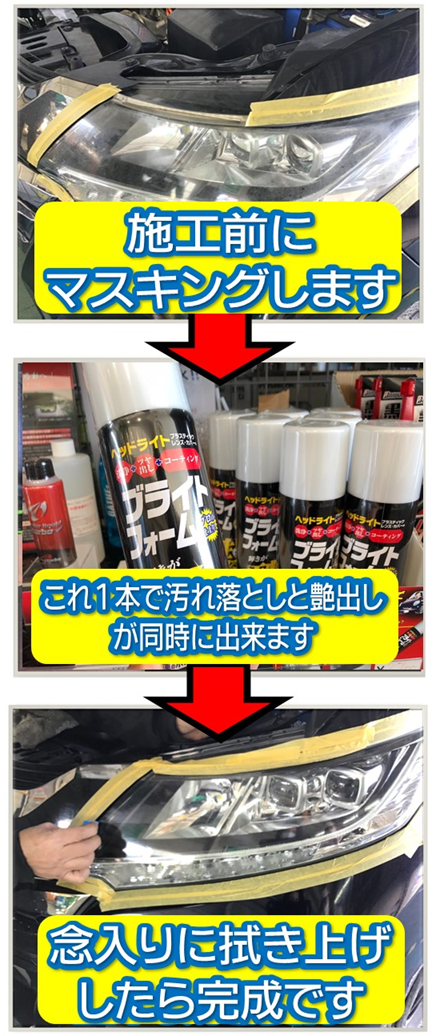 ※写真は作業イメージですヘッドライトの劣化具合によっては