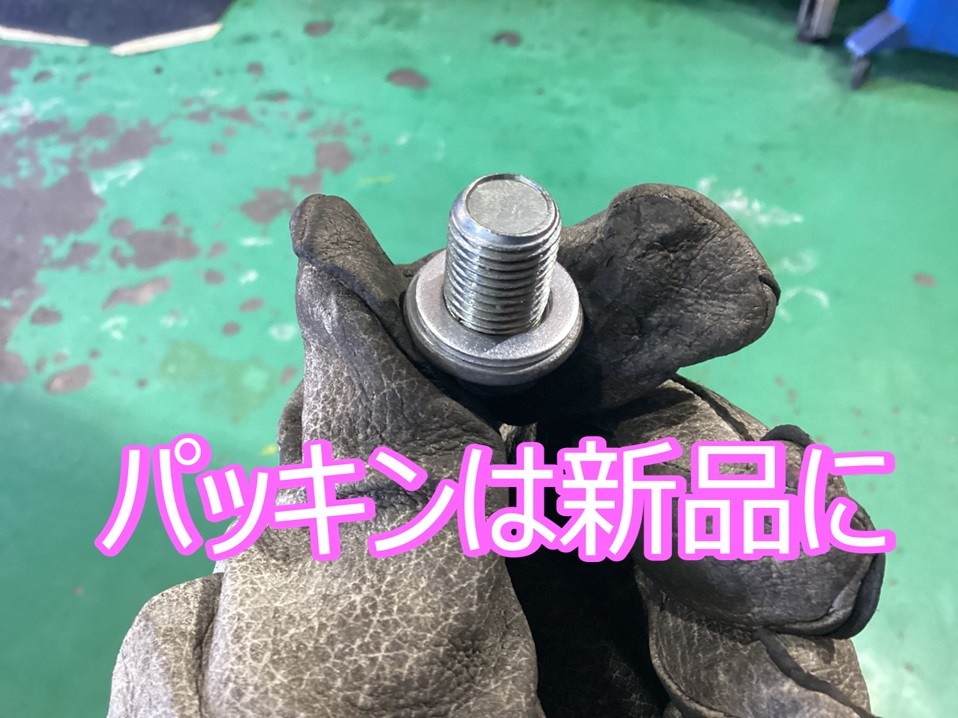 今回のエンジンオイル交換はドレンボルトを取り外して下抜きしました。