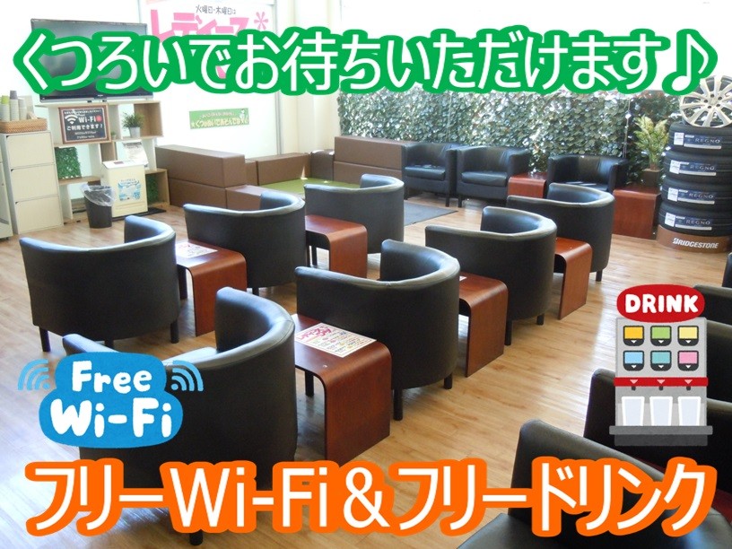 タイヤ交換やエンジンオイル交換となると1時間程はお待ちいただくこととなりますが、タイヤ館あさかには広めの待ち合いスペース(ウェイティングコーナー)がございますので、作業中はゆったりとくつろいでお待ちいただけます♪
