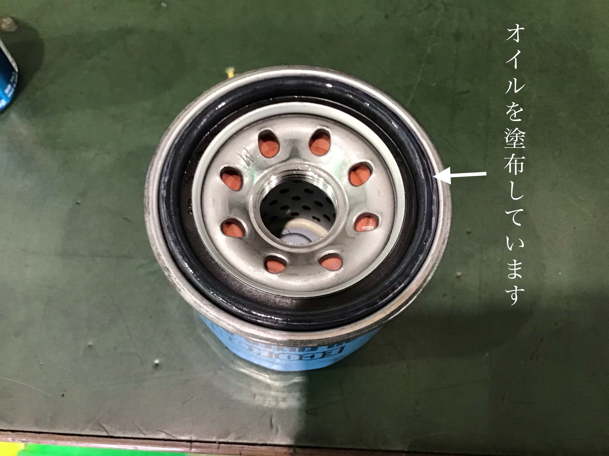 ↓その間にオイルエレメントのパッキンにオイルを塗布していきます。↓