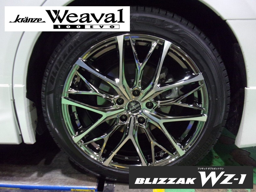 とのことで、今回タイヤはブリヂストンの新作スタッドレス『ブリザック・WZ-1』を、アルミホイールはWEDSのkranze・Weaval100EVOをお選びいただきました。