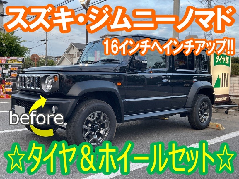 本日はスズキ・ジムニーノマドのタイヤ&アルミホイールセット交換の紹介です。