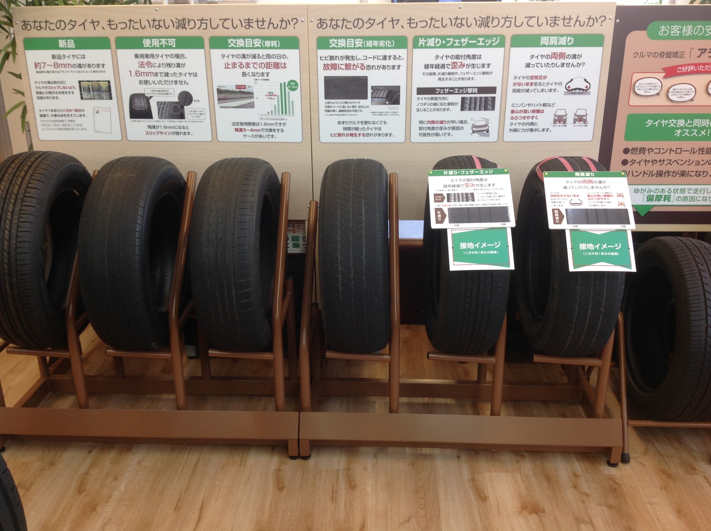店内に展示していますヨ!! ポスト 2017年12月16日 タイヤの片減りや偏摩耗してしまったタイヤって見たことありますか?? 店内に要注意タイヤを展示してありますので、自分のタイヤは大丈夫?? と気になる方は、ぜひ見比べて下さい! 安全点検も実施していますので、お気軽にご来店くださいネ(゚∀゚) 担当:伊藤