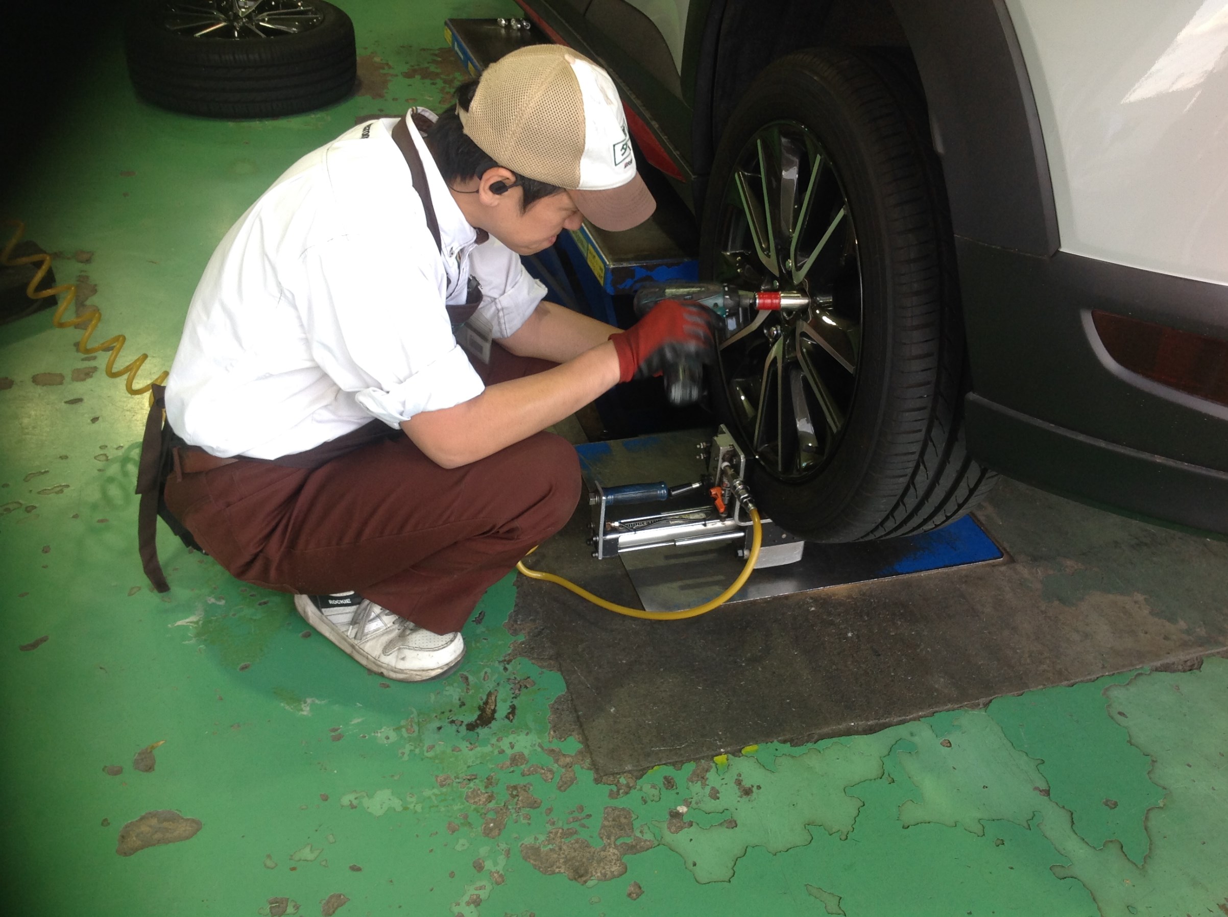 タイヤ館独自のセンターフィットの作業風景デス!!