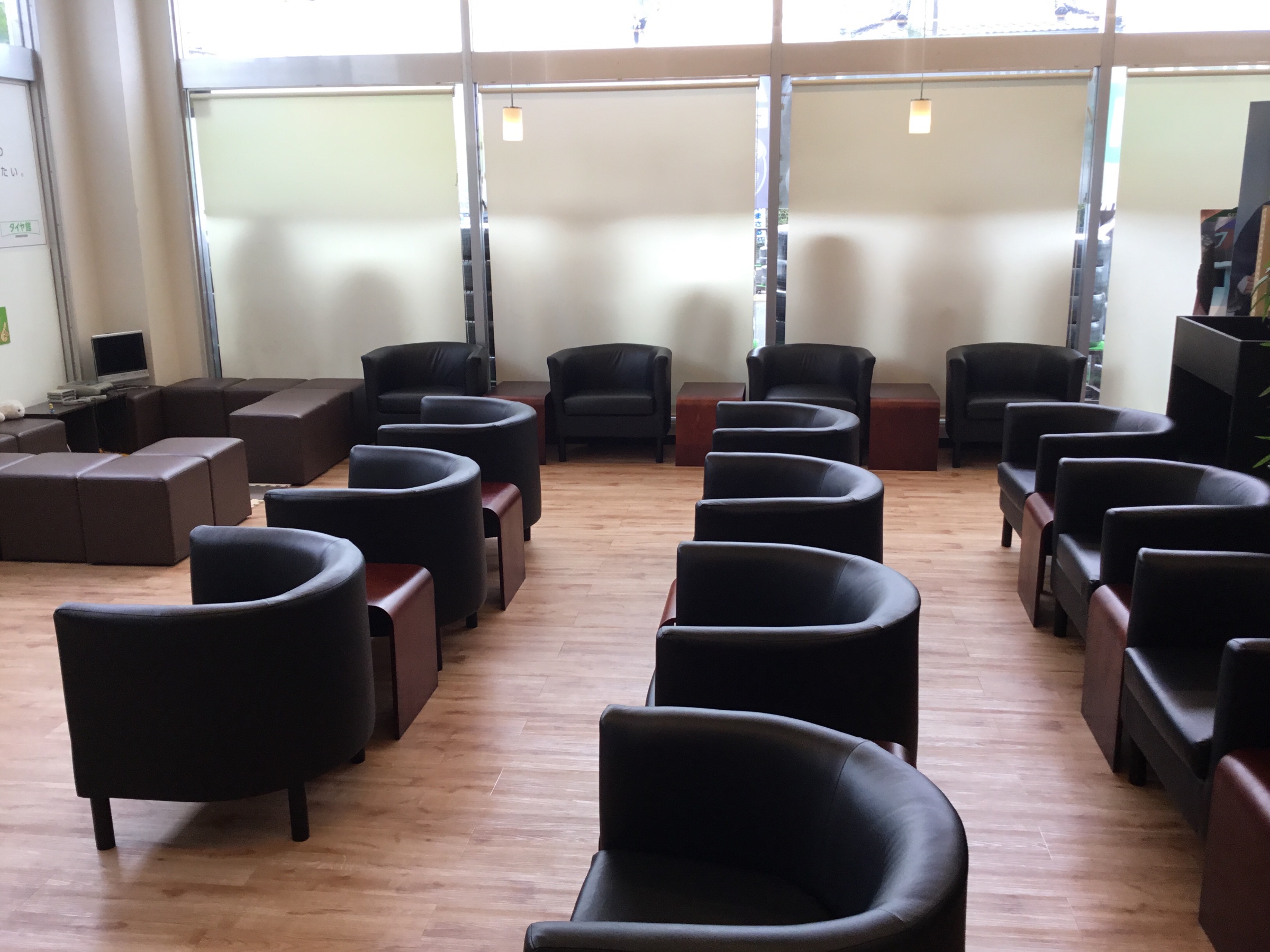 少しでも快適にお待ち頂く為に待合席を広く設けております。