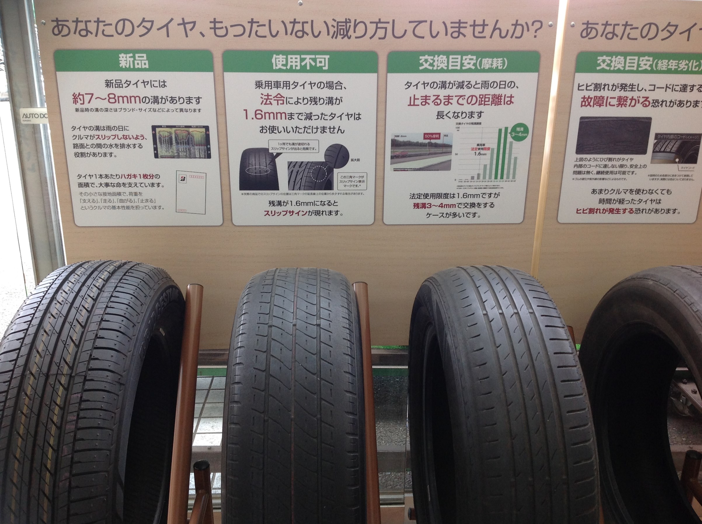 タグ:タイヤ、溝、少ない、滑る、雨、坂道、交換、新品、スリップサイン