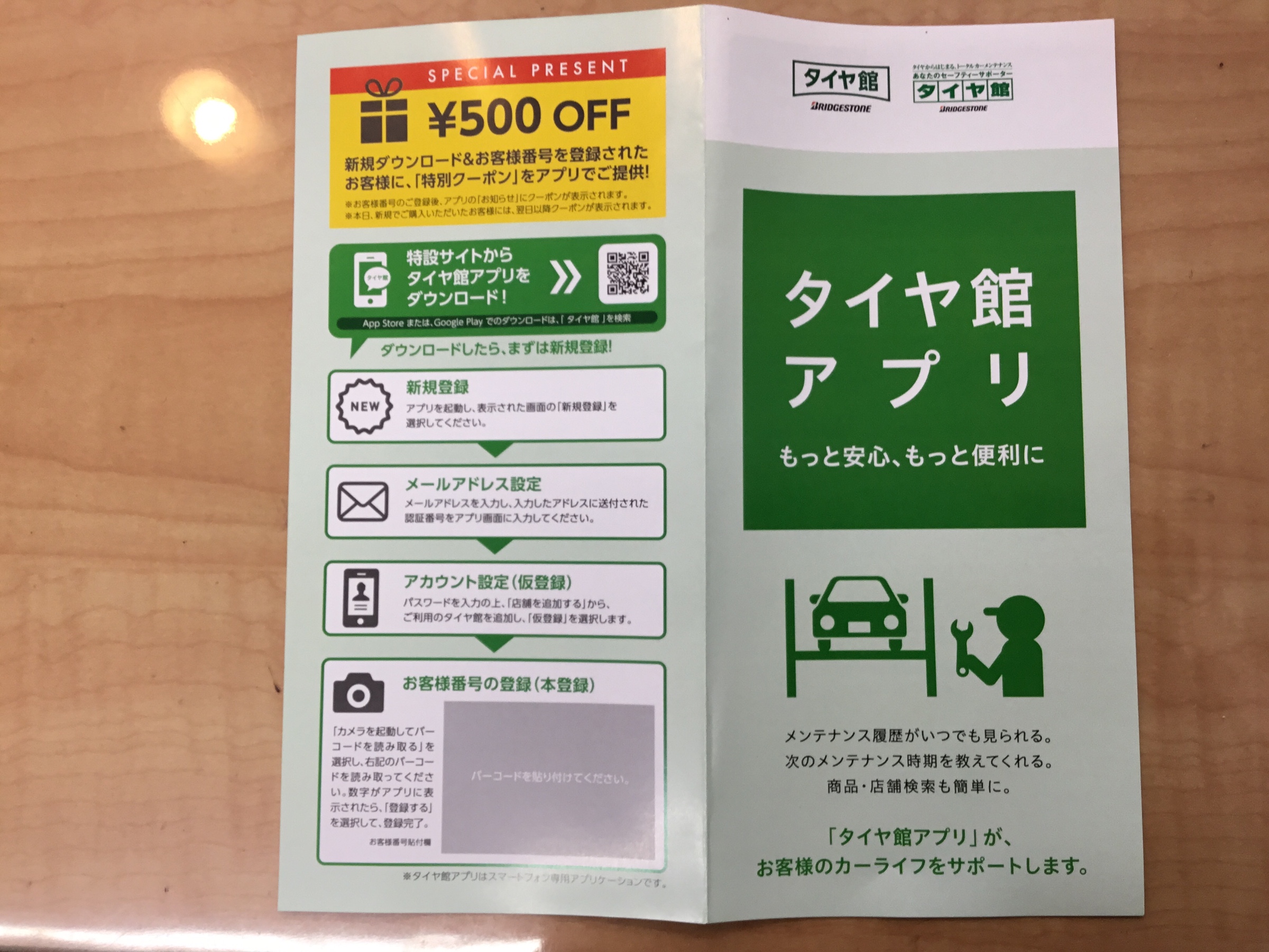 店内にもQRコードも置いておりますし、タイヤ館アプリと検索すればすぐ出てきます!