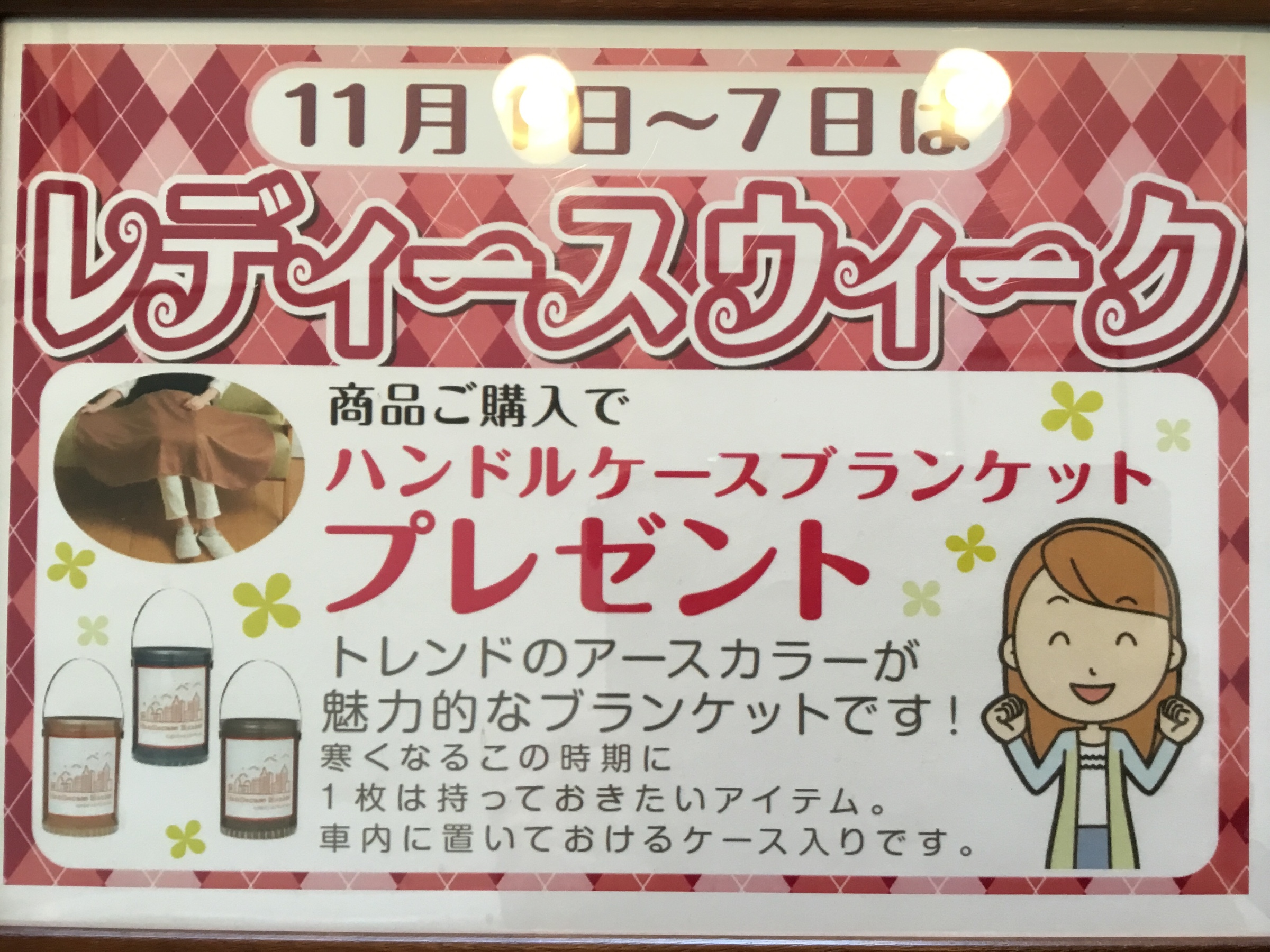 レディースウィークです! ポスト 2018年11月3日 毎月1〜7日はレディースウィーク開催です。 今月はブランケットをプレゼント! 寒くなるこの時期にピッタリです(・∀・) オイル交換等してない方はついでにゲットしちゃいましょう! 男性の方でも女性の方とご一緒なら適用されますのでご来店心よりお待ちしております! あさか 新座 志木 ブランケット レディースウィーク オイル交換 女性 お得 担当:平田
