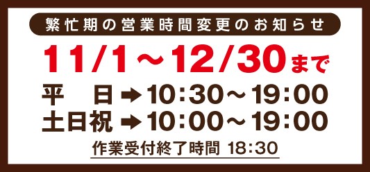 ※作業受付終了時間は18:30となりますが、近隣への配慮から
