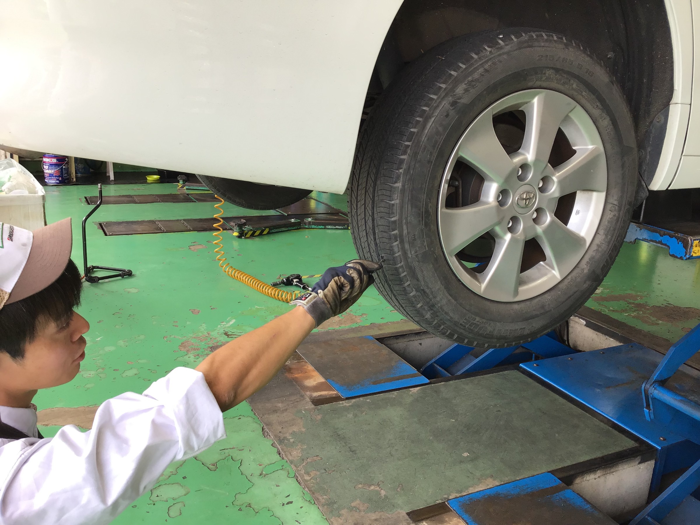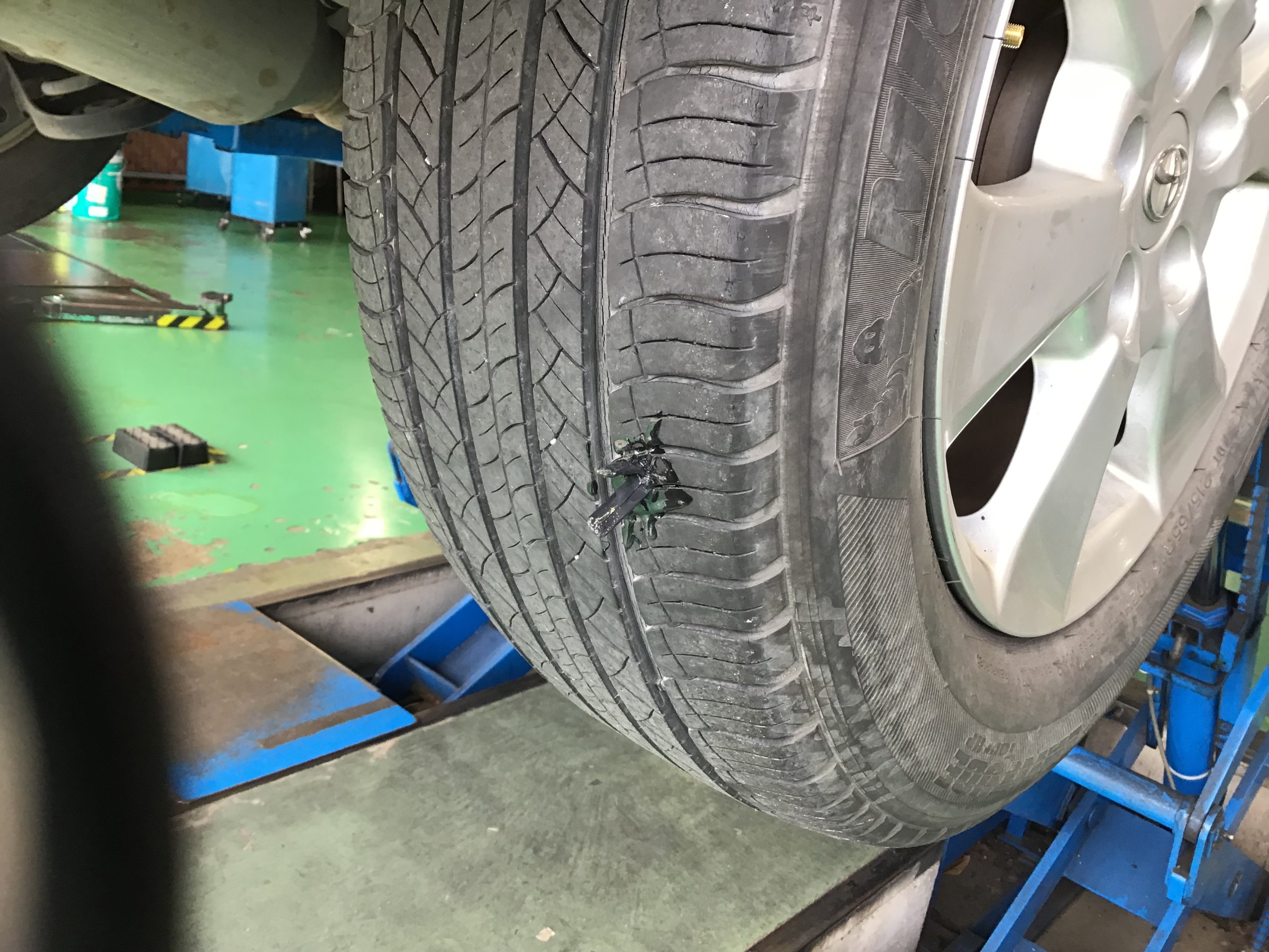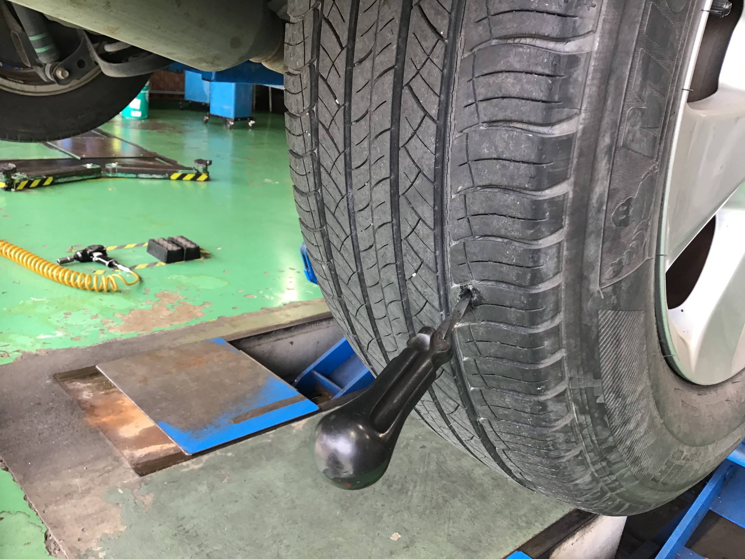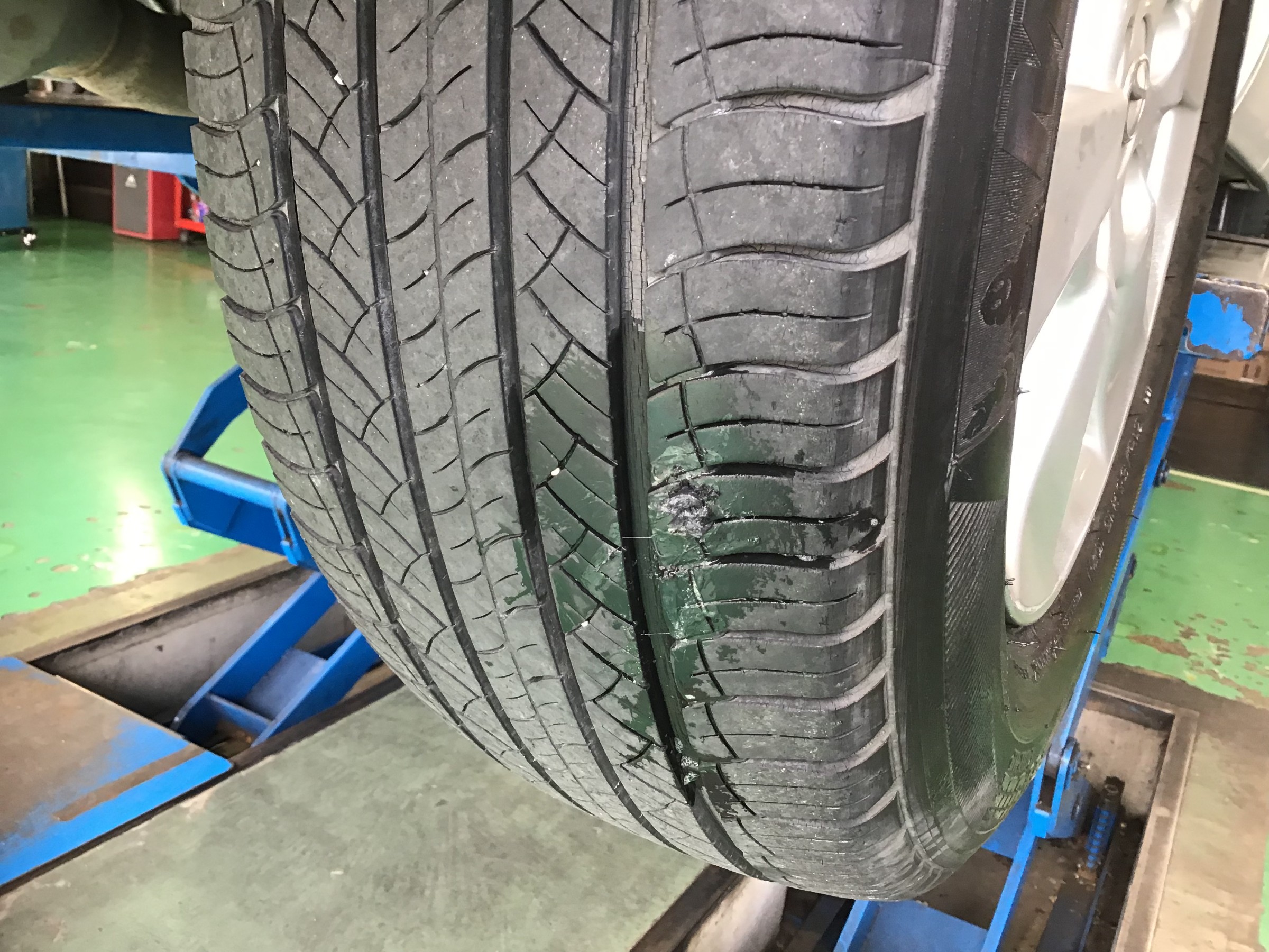 パンク修理! ポスト 2019年11月3日 本日パンクで外面修理の作業をさせて頂きました(`・ω・´)ゞ タイヤの修理が出来るギリギリの場所でしたが、無事に修理もおわり お帰り頂けました! スタッフが作業している様子を撮影しました! ①補修用のゴムを入れるために器具で穴を確認しています ②接着剤を穴の部分に塗ります ③補修用のゴムを挿入します ④補修完了です。走っているうちに馴染んでいきます 担当:伊藤