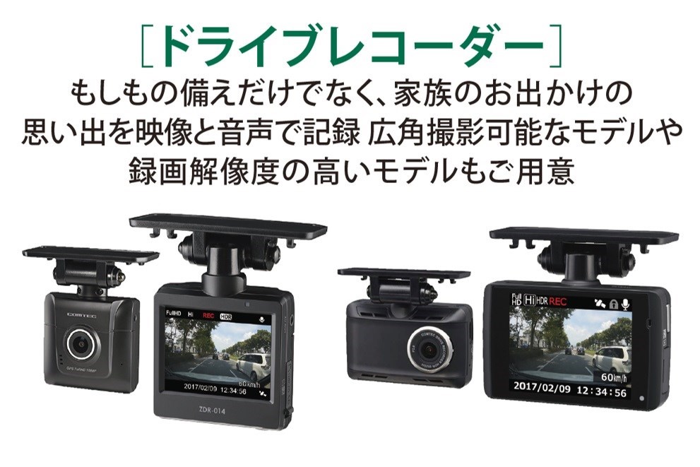 広角レンズ使用でより広い視野角で録画可能なモデルや、FullHDの高画質モデル。