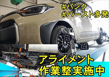 パンク・バースト多発!!タイヤ交換が始まる前に~アライメントで足回りをリフレッシュ!!