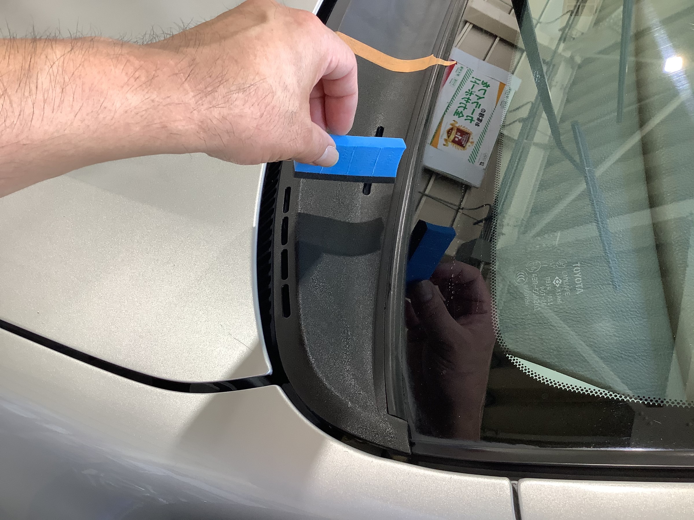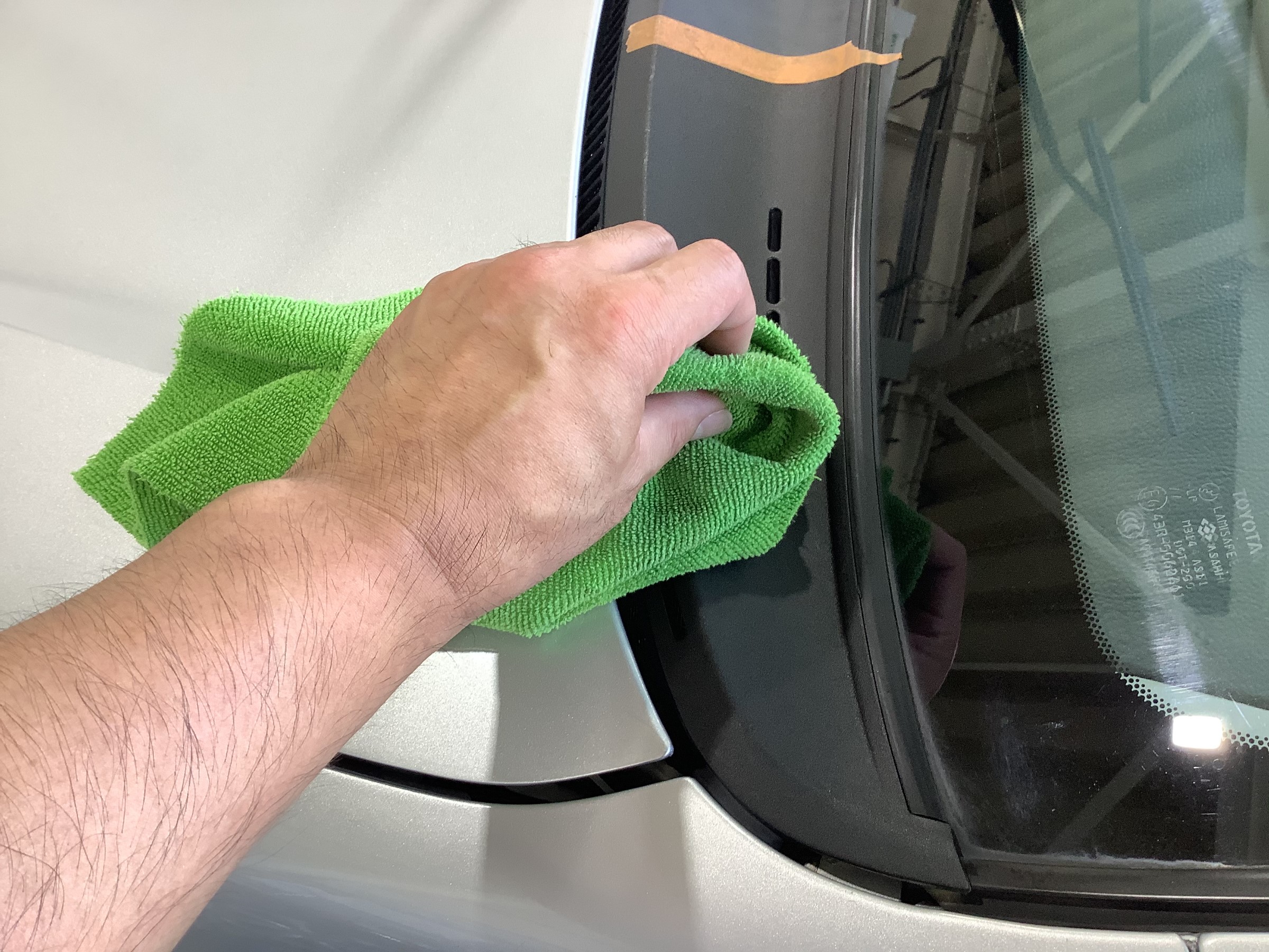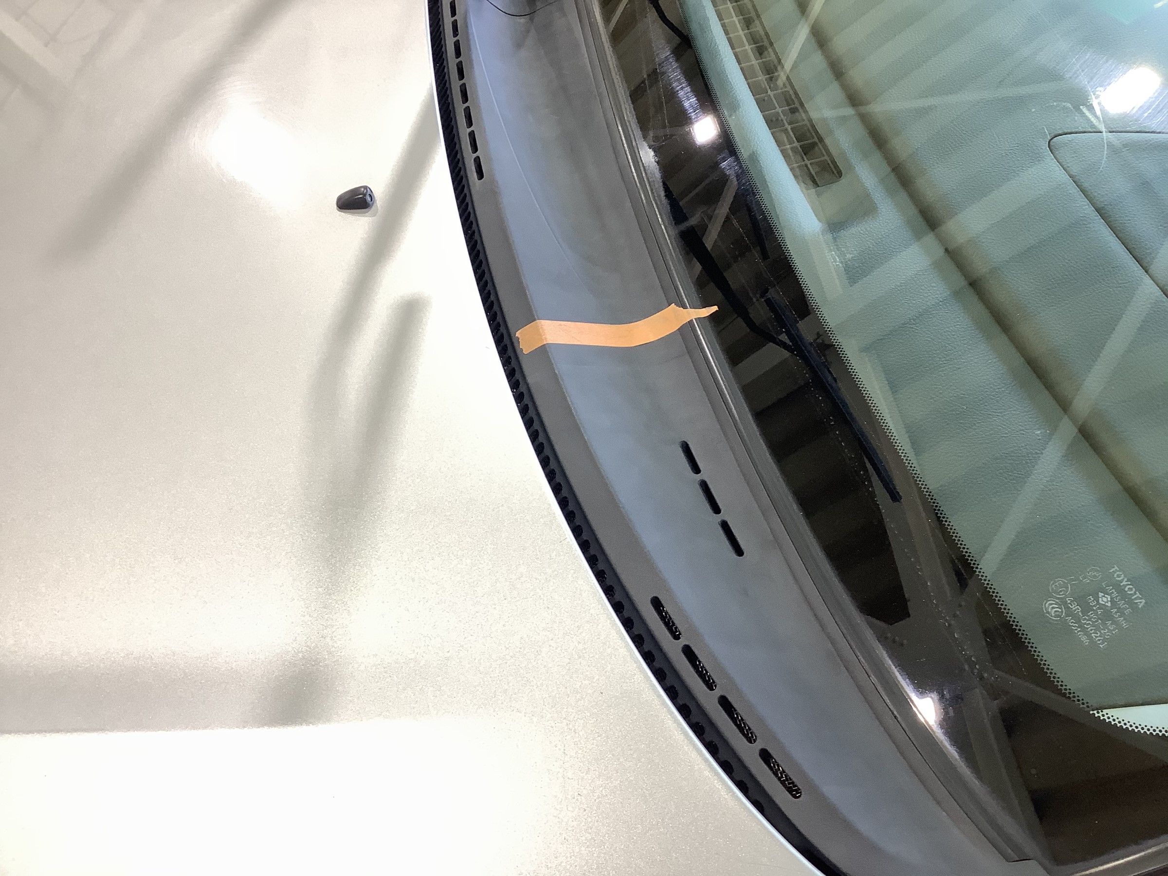 テープを貼ってコーティング未施工と施工後の違いが分かるように・・
