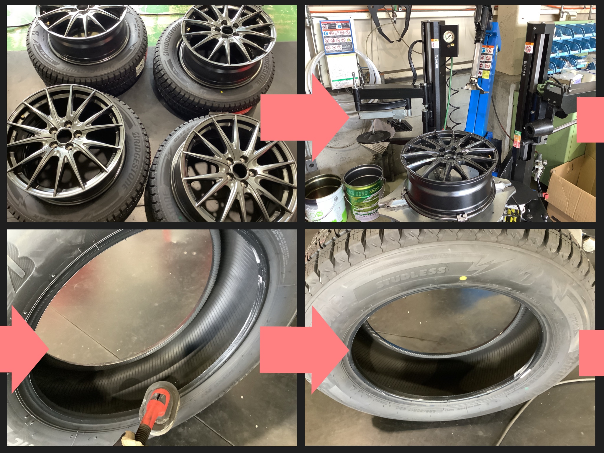 タイヤとアルミホイールが接する部分には