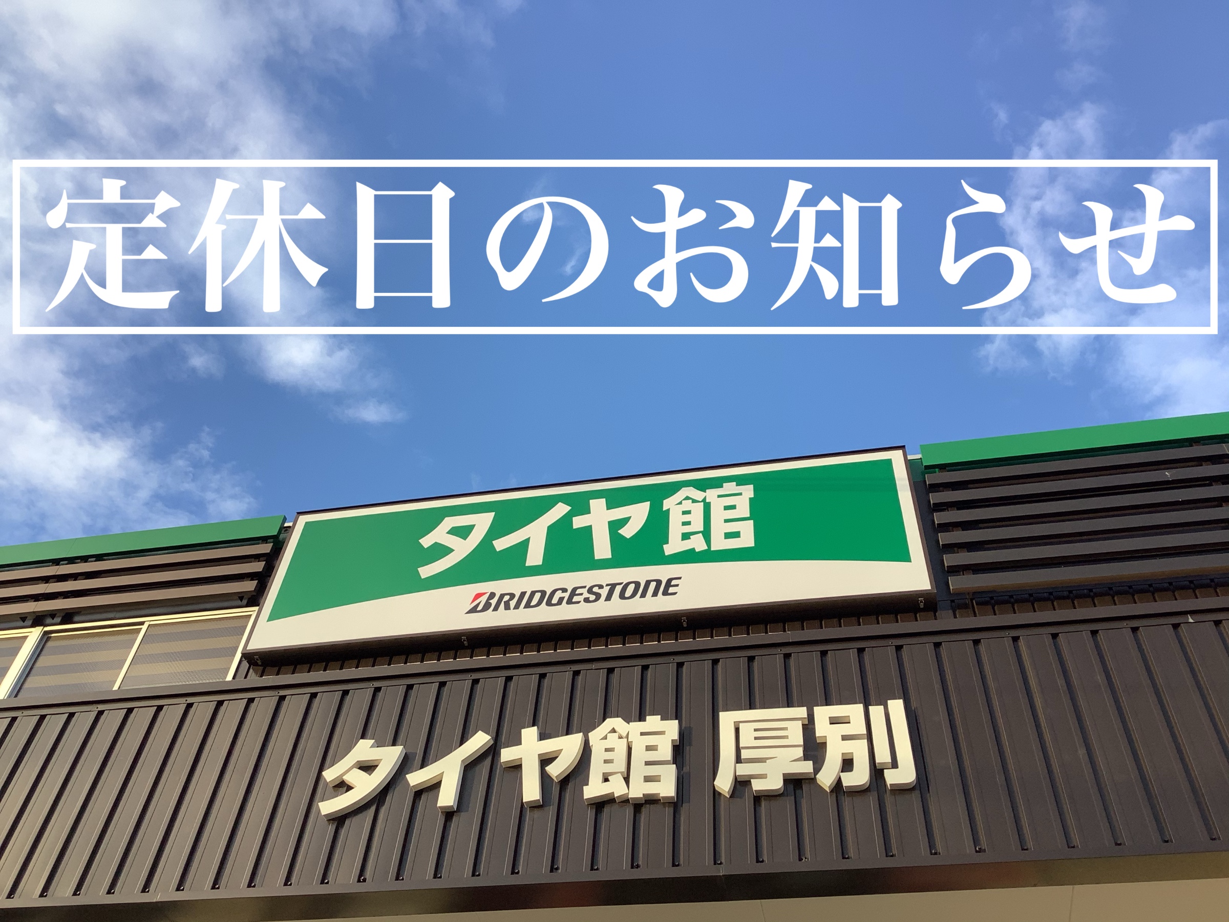 定休日のお知らせ ポスト 2021年8月4日 タイヤ館厚別のホームページをご覧いただき 誠にありがとうございます! 本日8月4日(水)は定休日のためお休みでございます。 作業予約やお問い合わせ等は翌5日(木)以降にお願い致します。 お手数をお掛け致して申し訳ございませんが ご理解とご協力のほどよろしくお願い致します。 担当:スタッフ一同