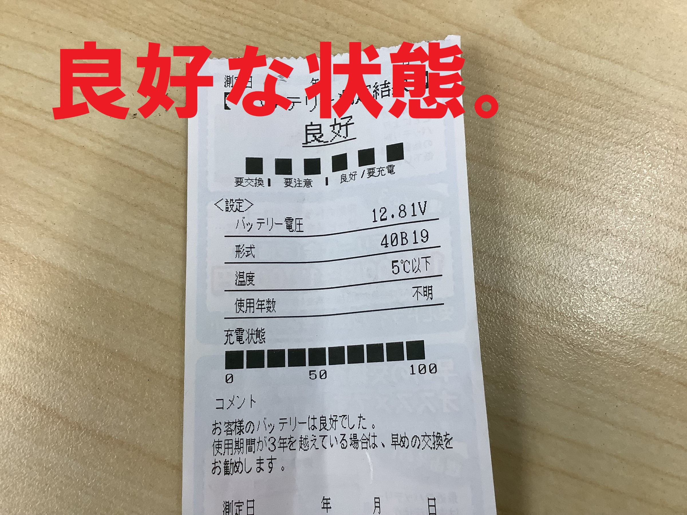バッテリーテスターという優れモノがありまして・・上の画像なら文句なしGOODです