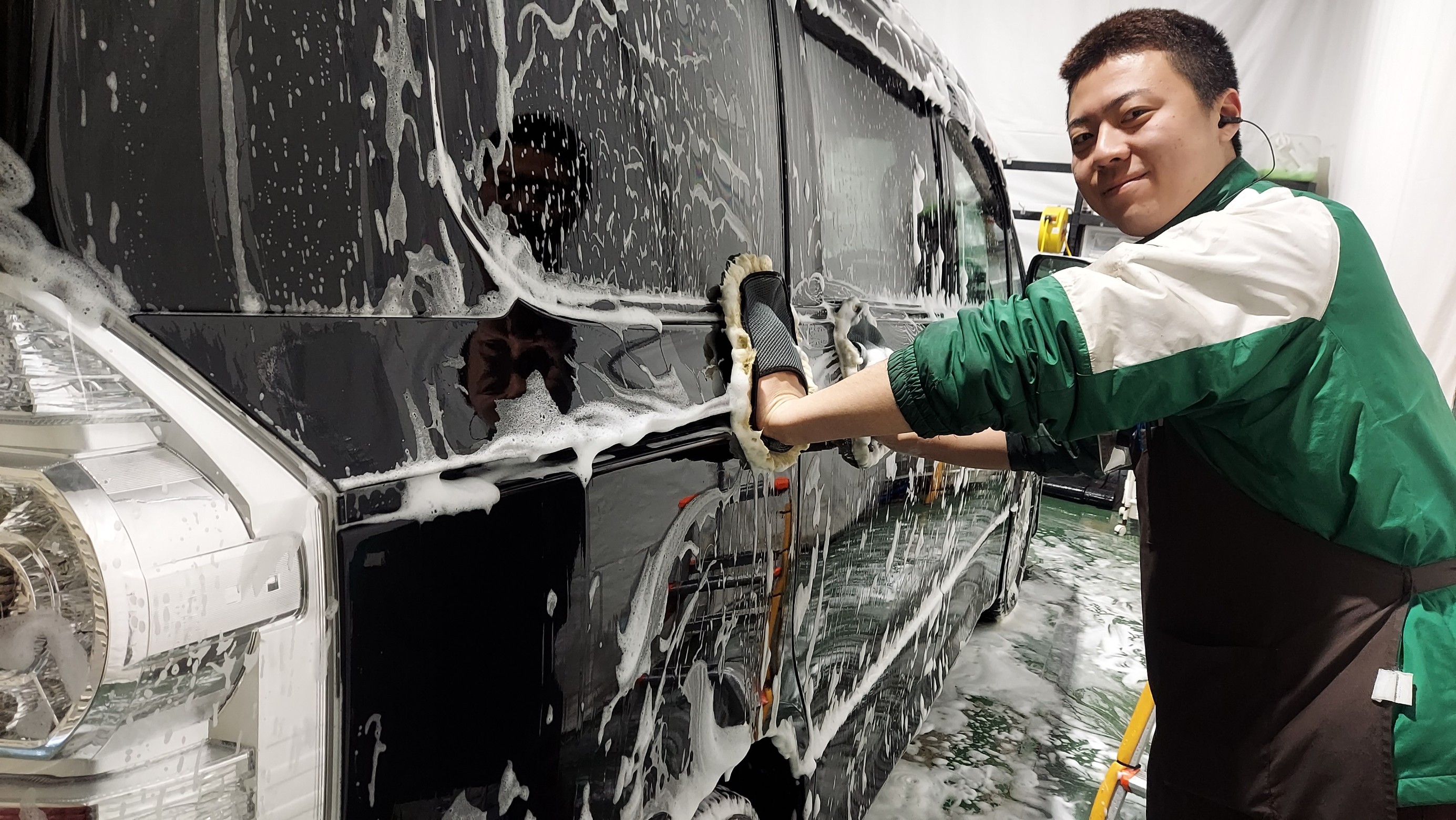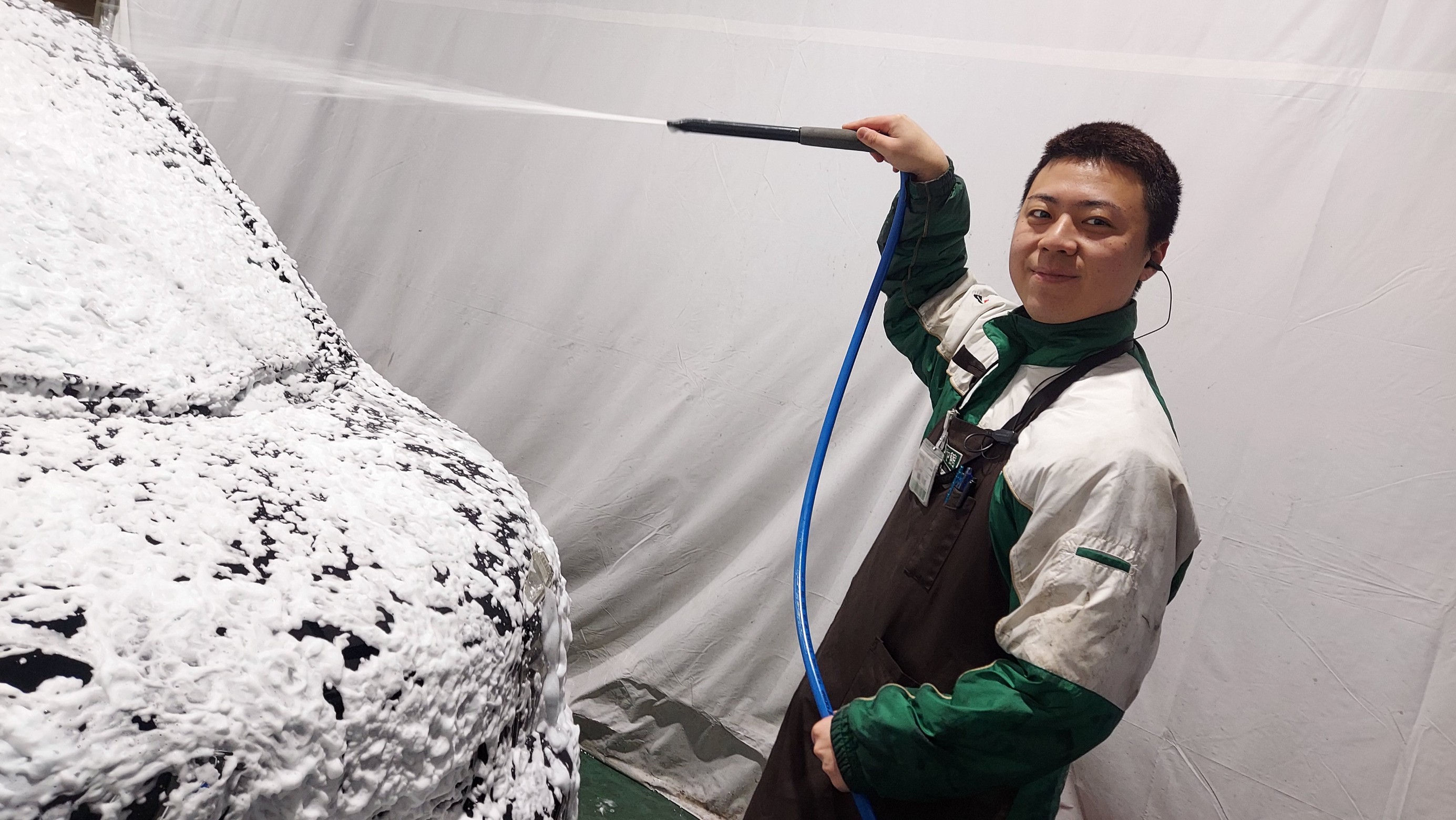 専用の洗車機械を使いボディを泡でモコモコ~