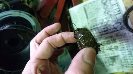 外したベアリングは痩せていてボールがぽろぽろ落ちるくらい(;´・ω・)こりゃダメだ