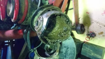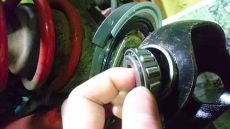 原因を探るとどうやらキングピンベアリングと思われる・・・