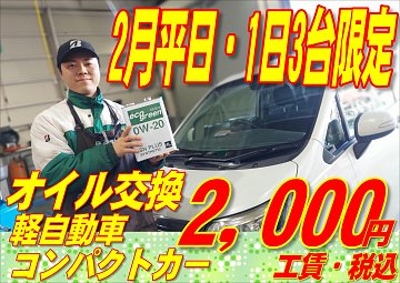 ☆2月・厚別店・平日限定!!エンジンオイル交換がお得☆