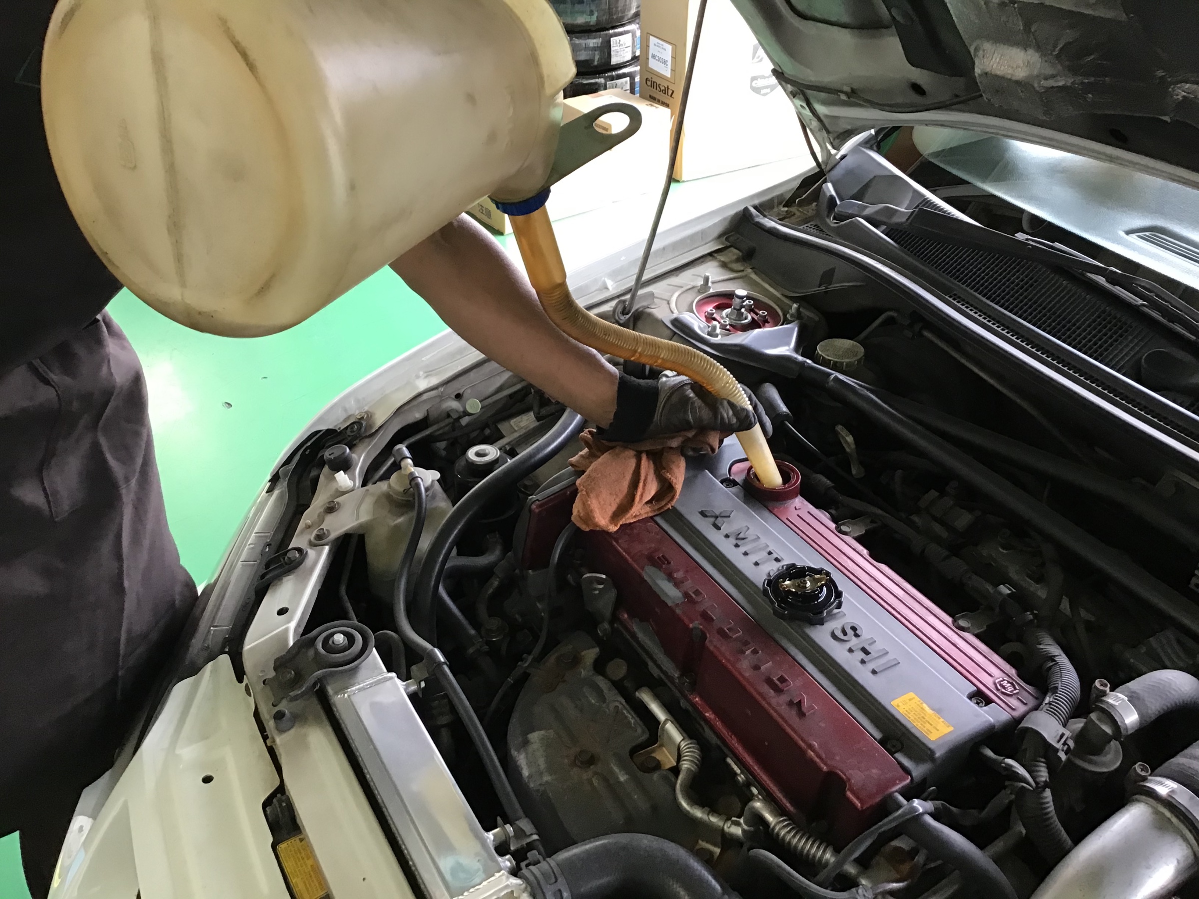 本日は 三菱 ランサーエボリューション Ⅶ のオイル交換 を行いました。