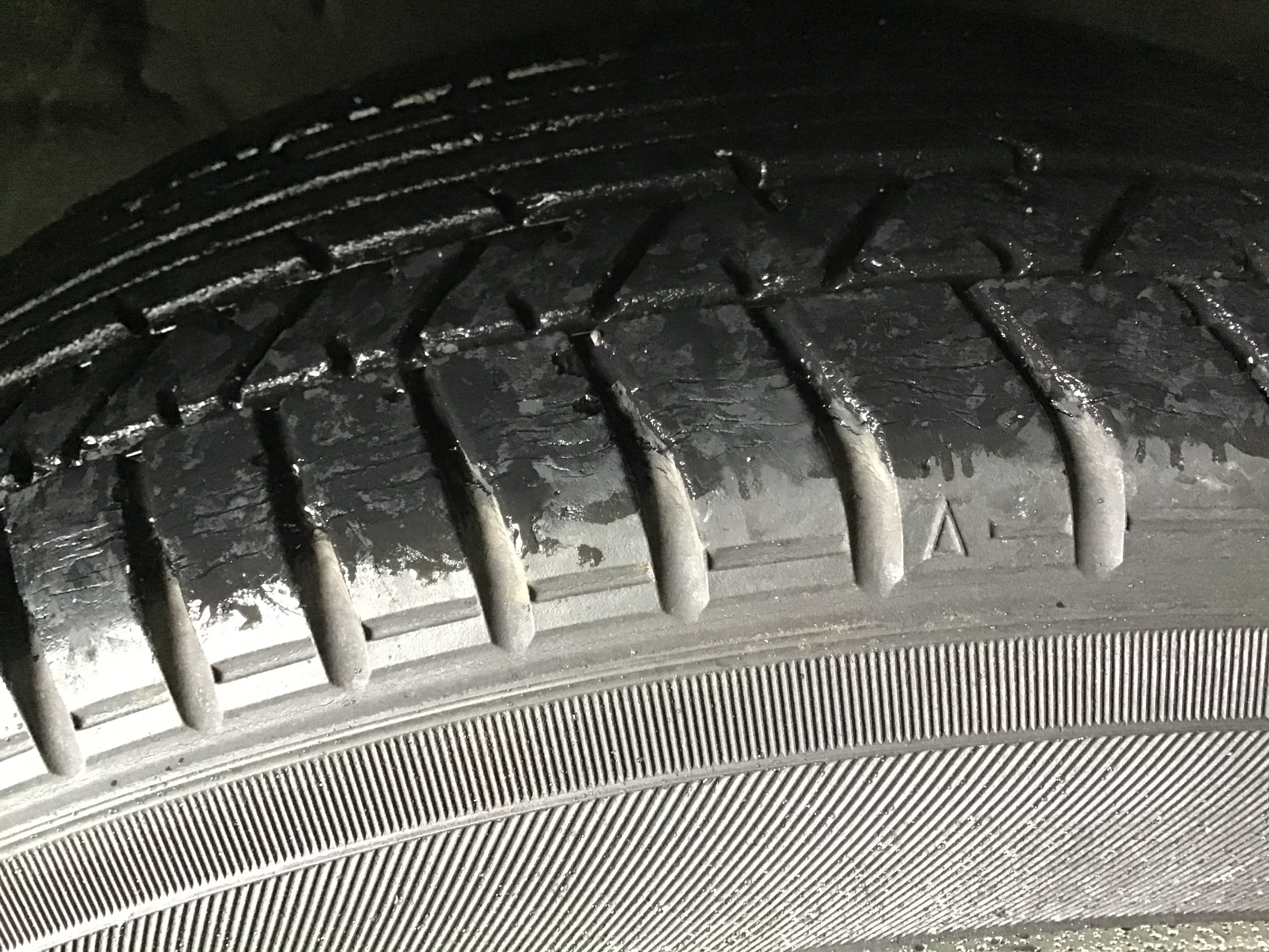 交換前のタイヤはヒビも入り、だいぶ傷んできています。