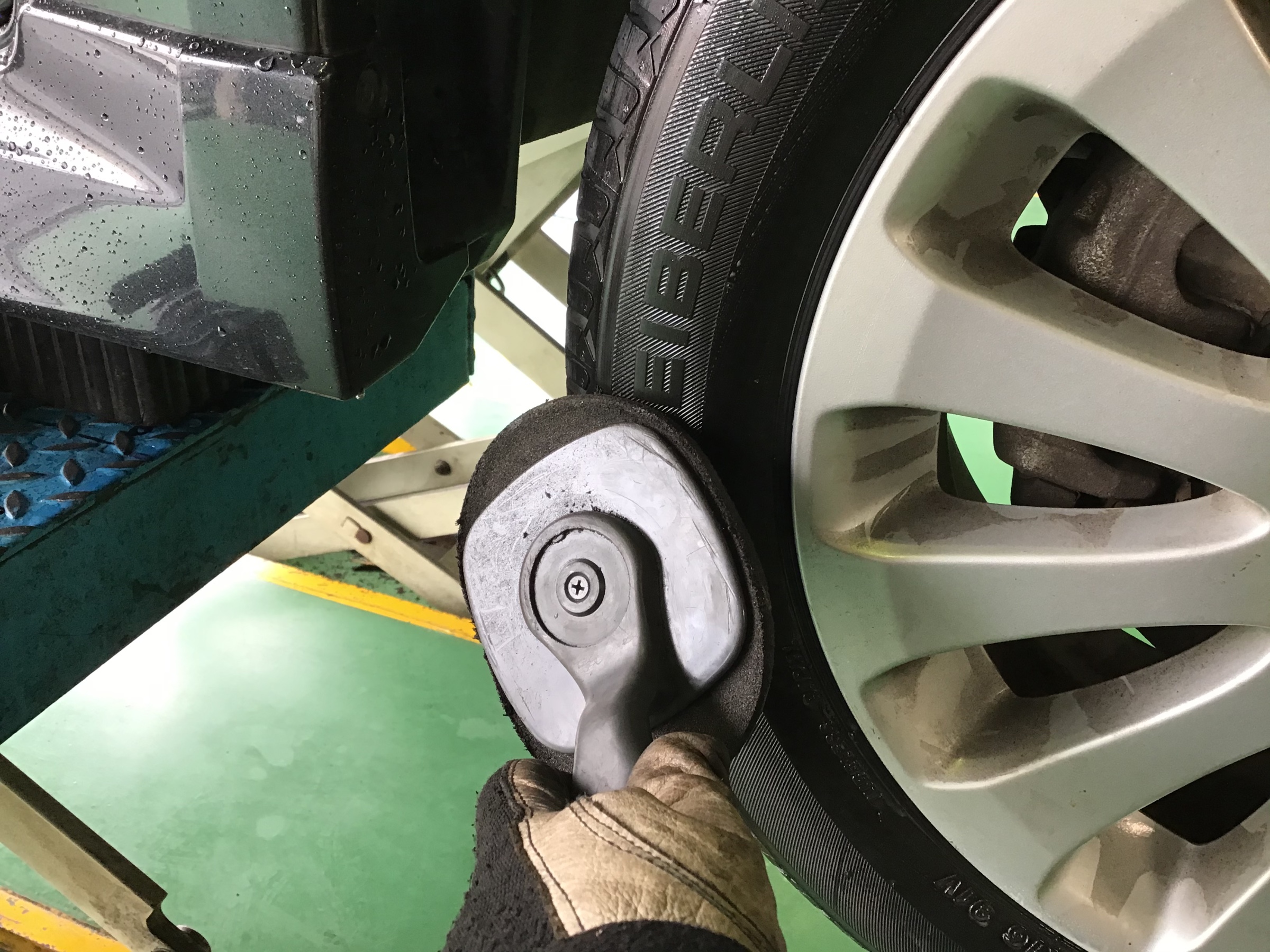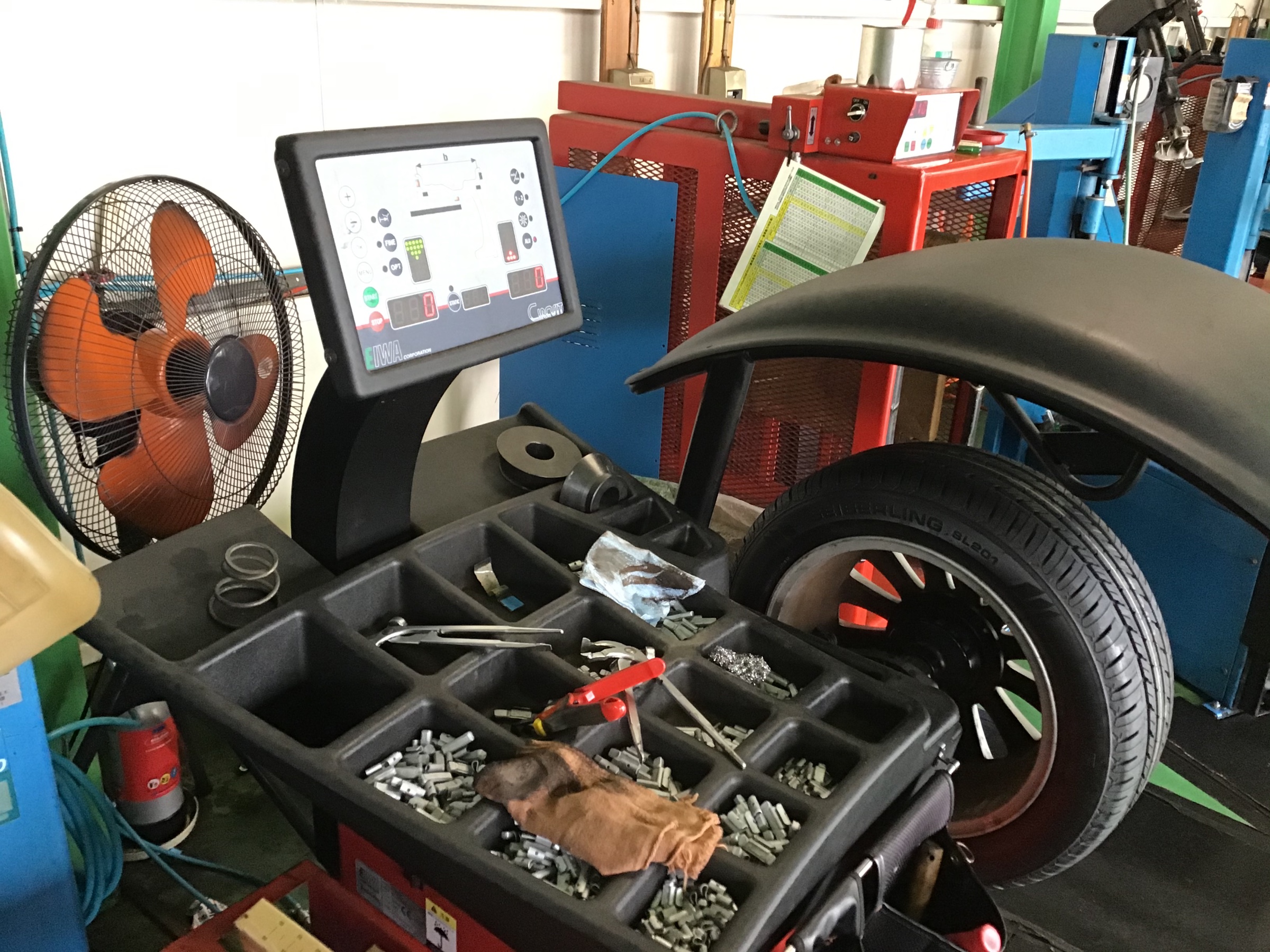組付けたタイヤ・ホイールのバランスを取り