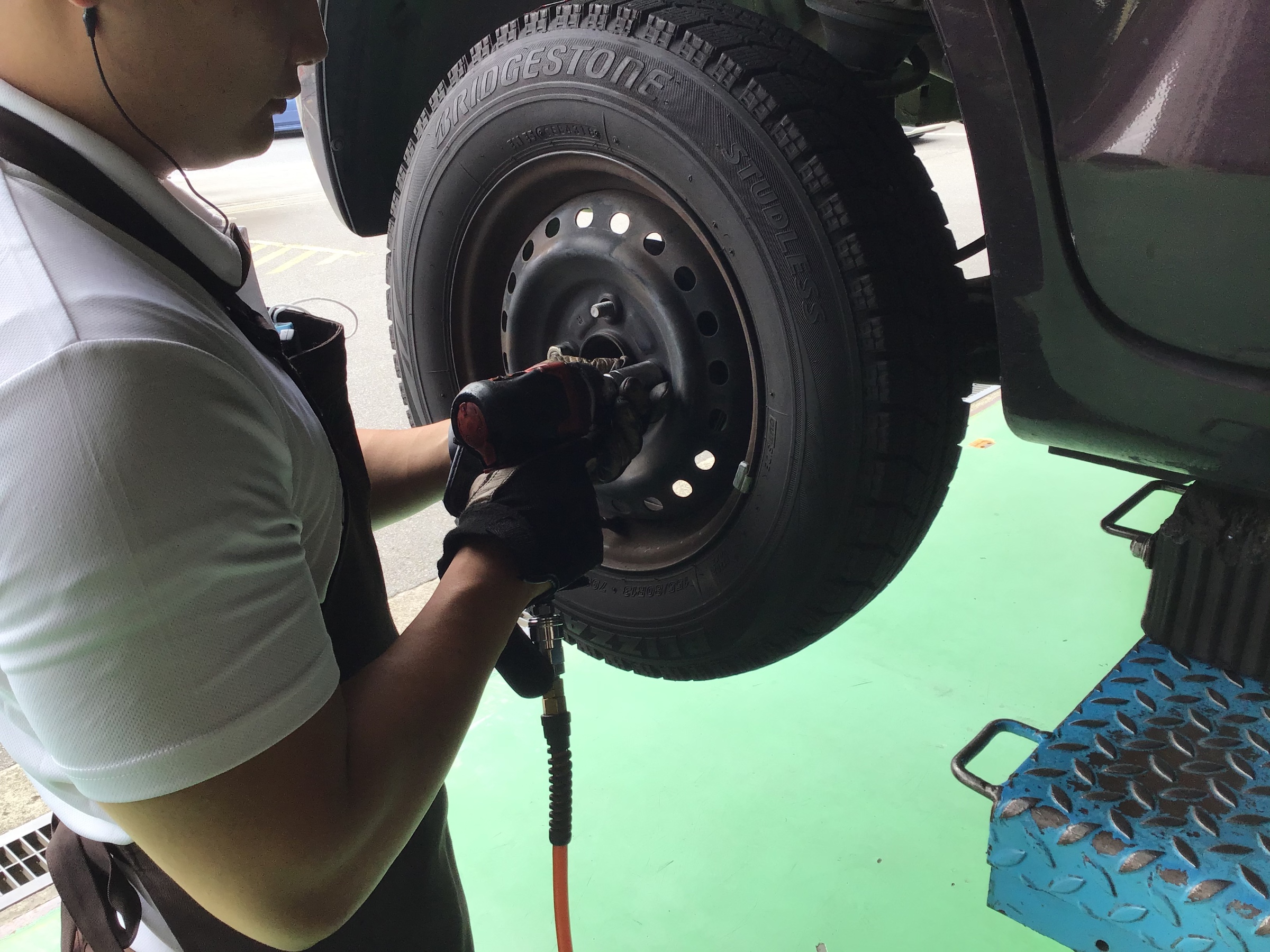 ます、こちらのお車はスタッドレスタイヤからの