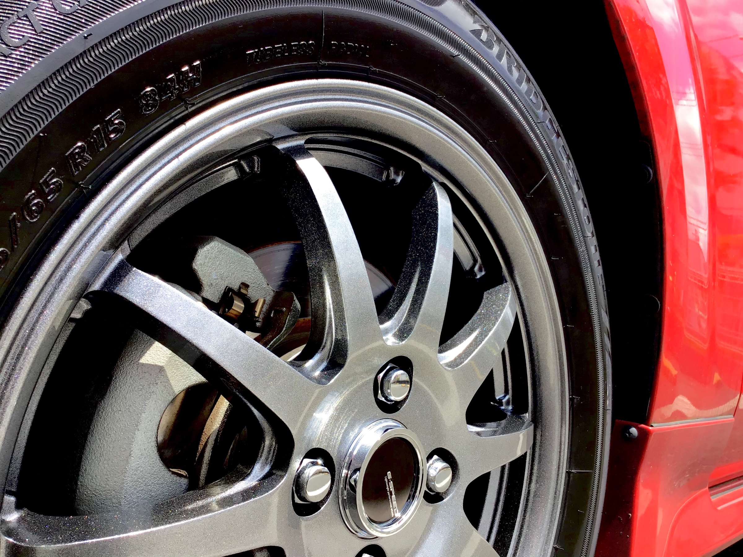 タイヤを取り付けたらタイヤワックスを塗り、ホイールを拭き上げます!