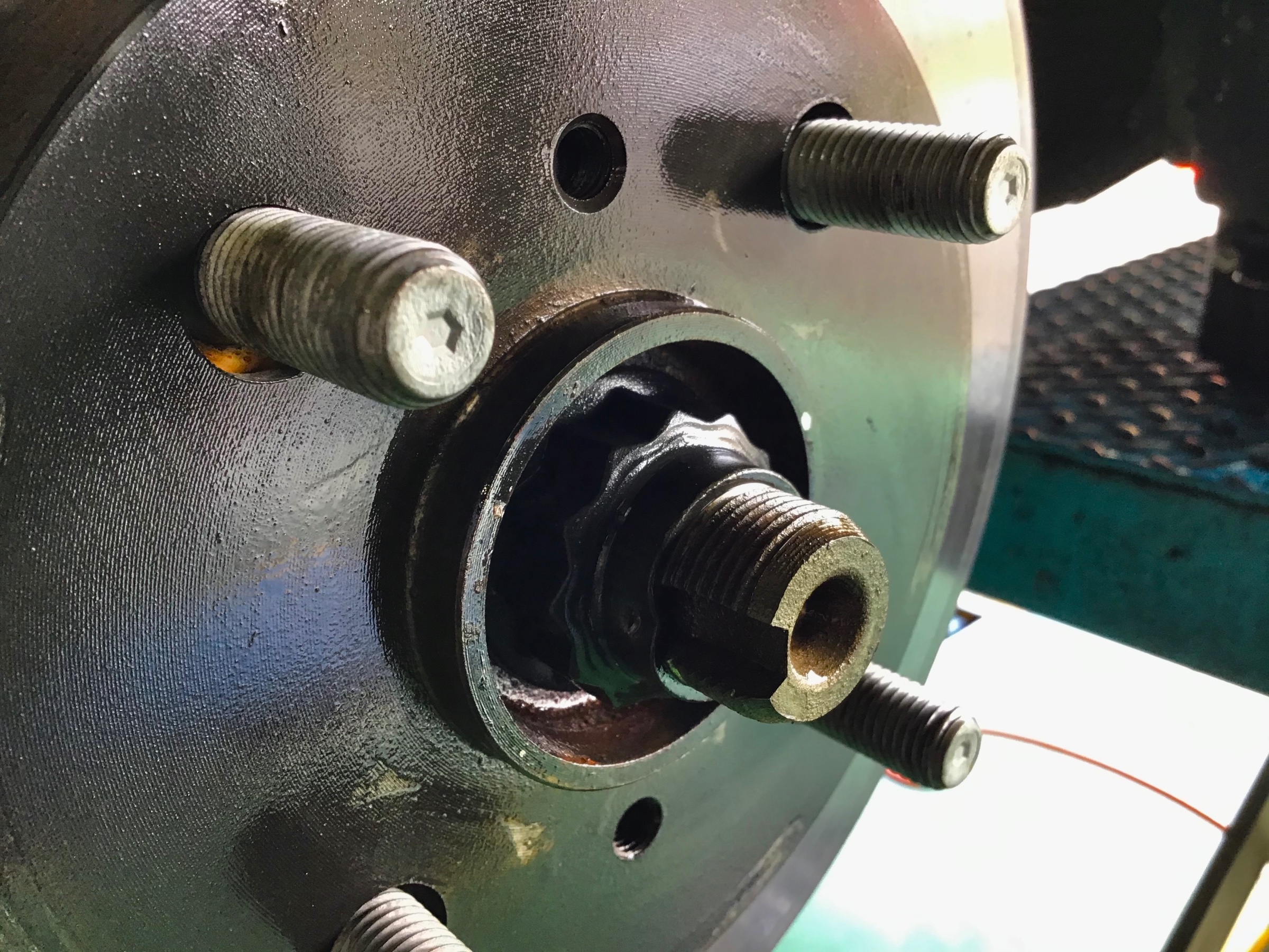 外したハブ廻りはサビ取りをし、コーティングをしました。