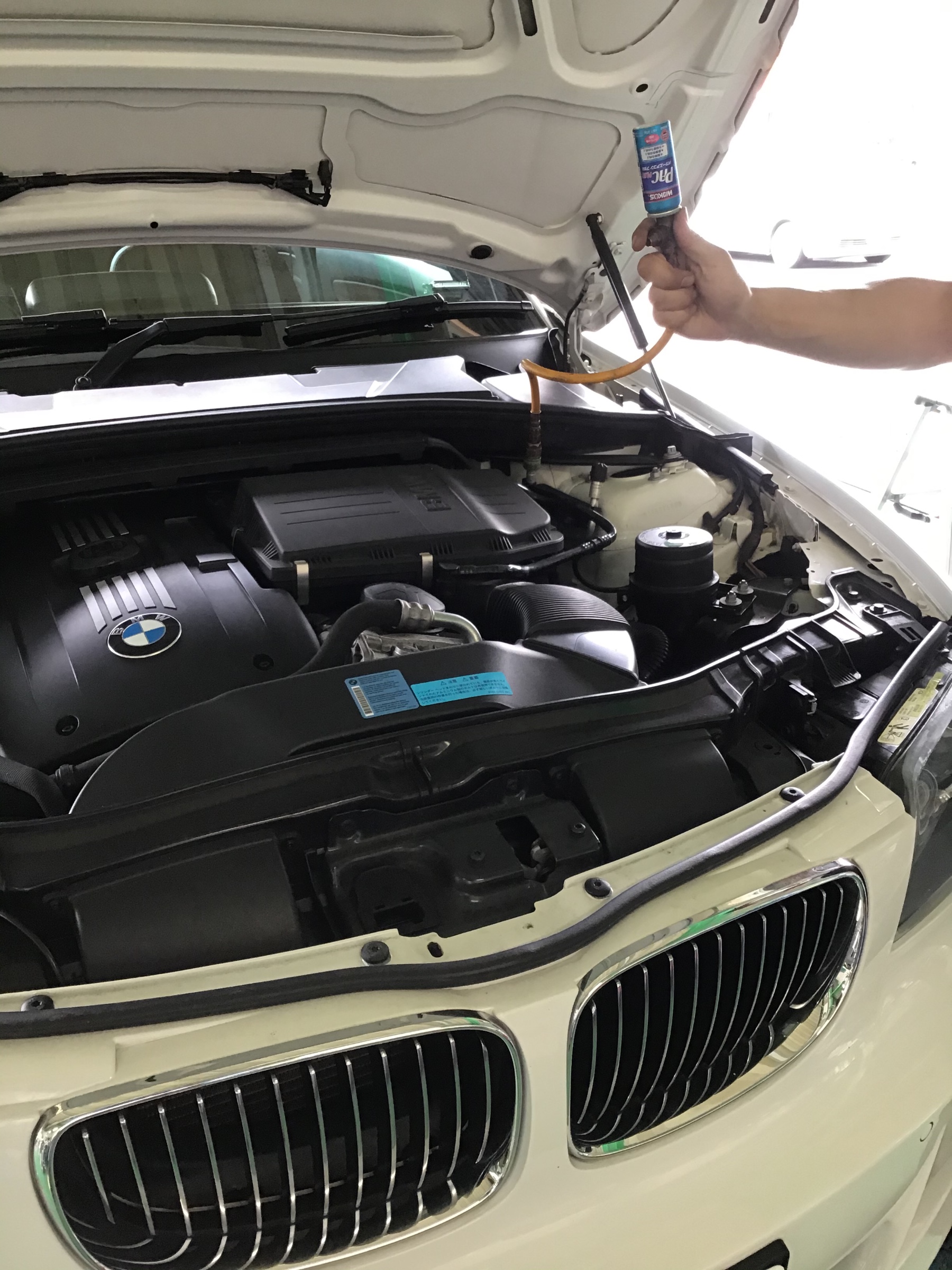 こちらのお車は、ここにエアコンガスの低圧口があります♪