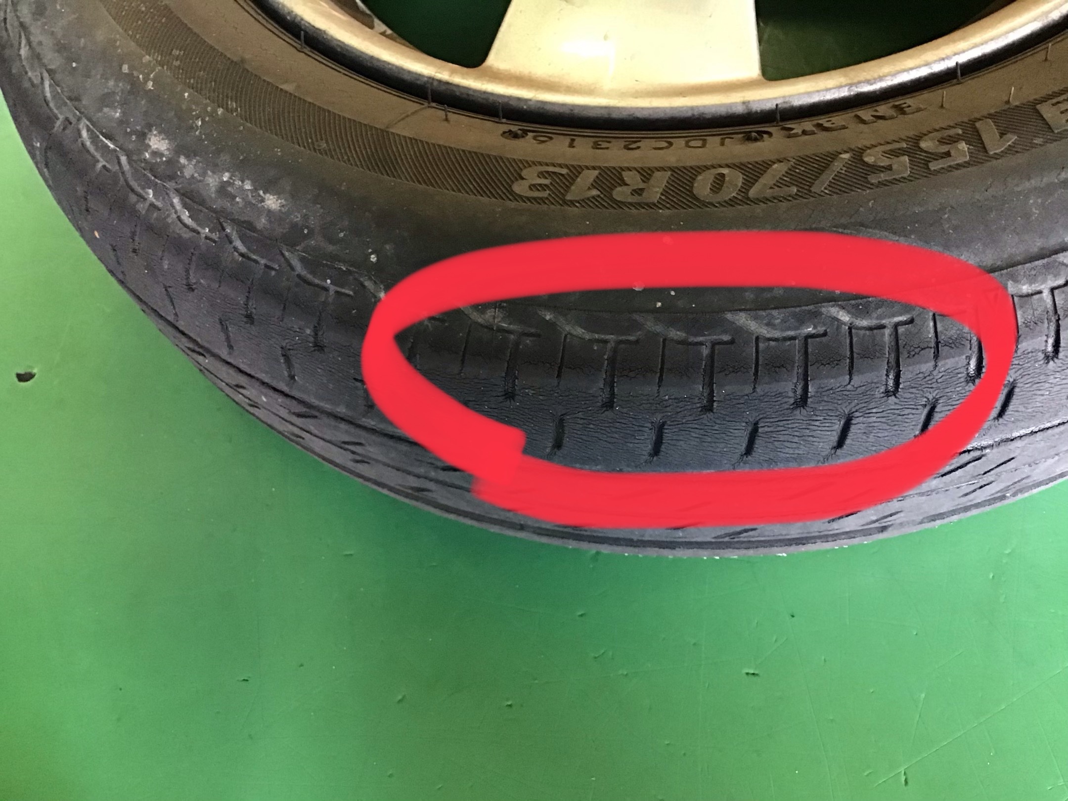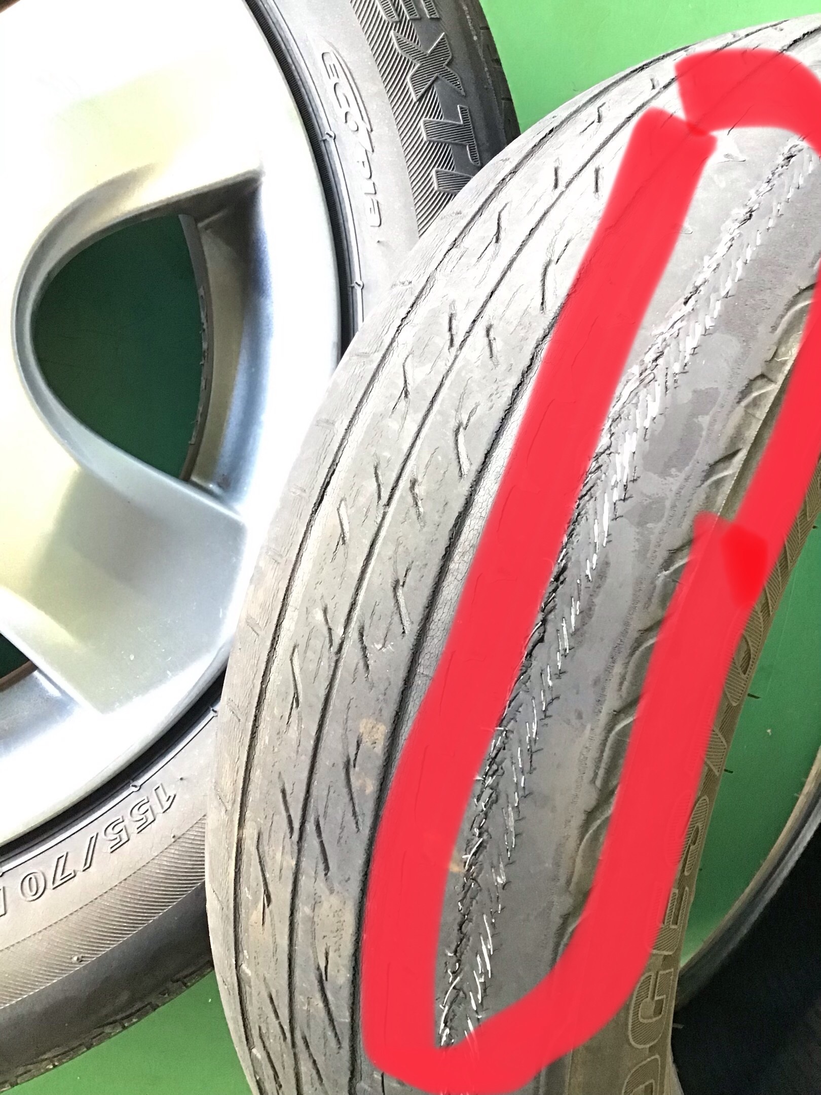タイヤの内側のワイヤーが出てしまっています・・・
