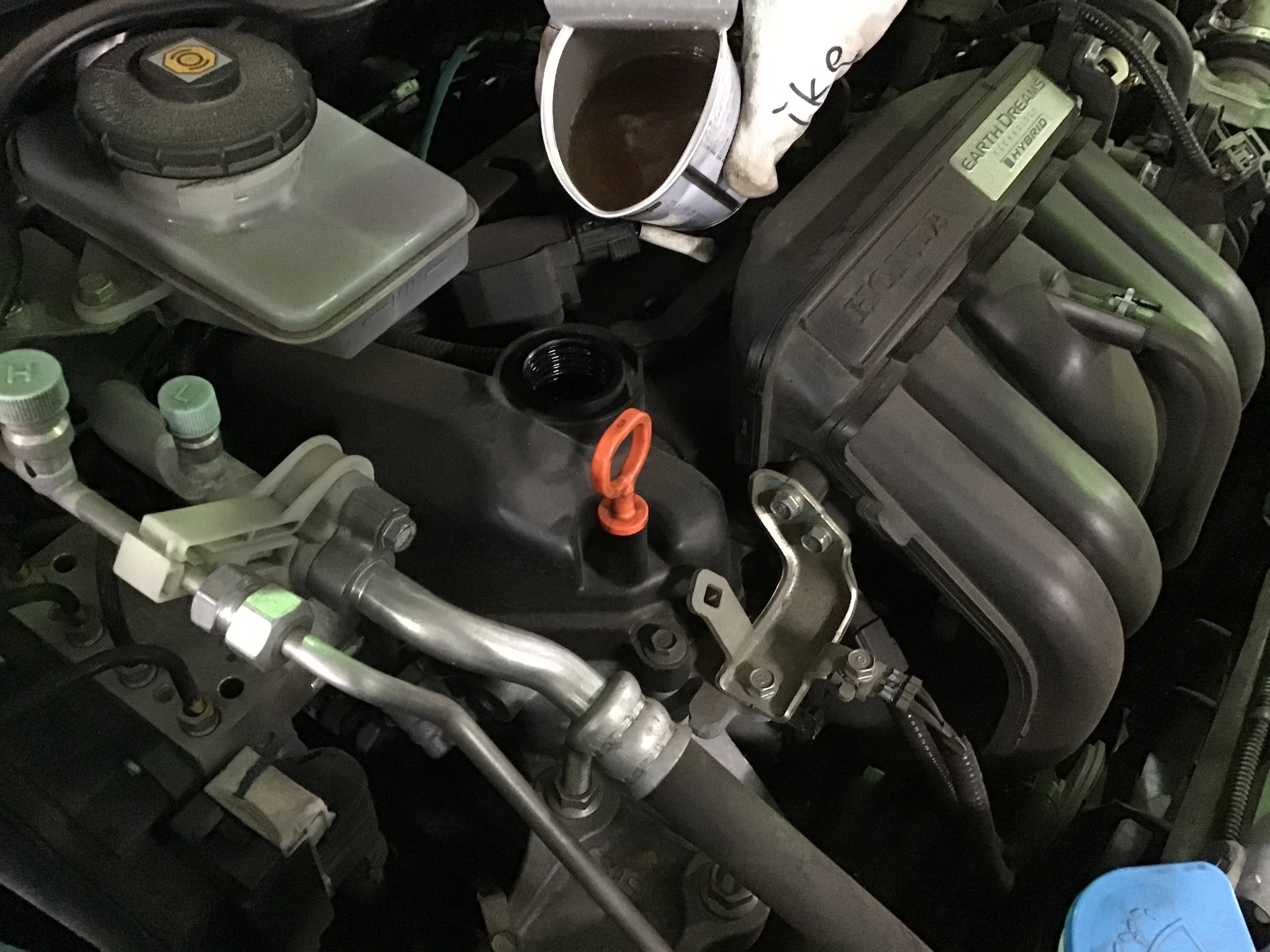 古いオイルフィルターに落とし込み