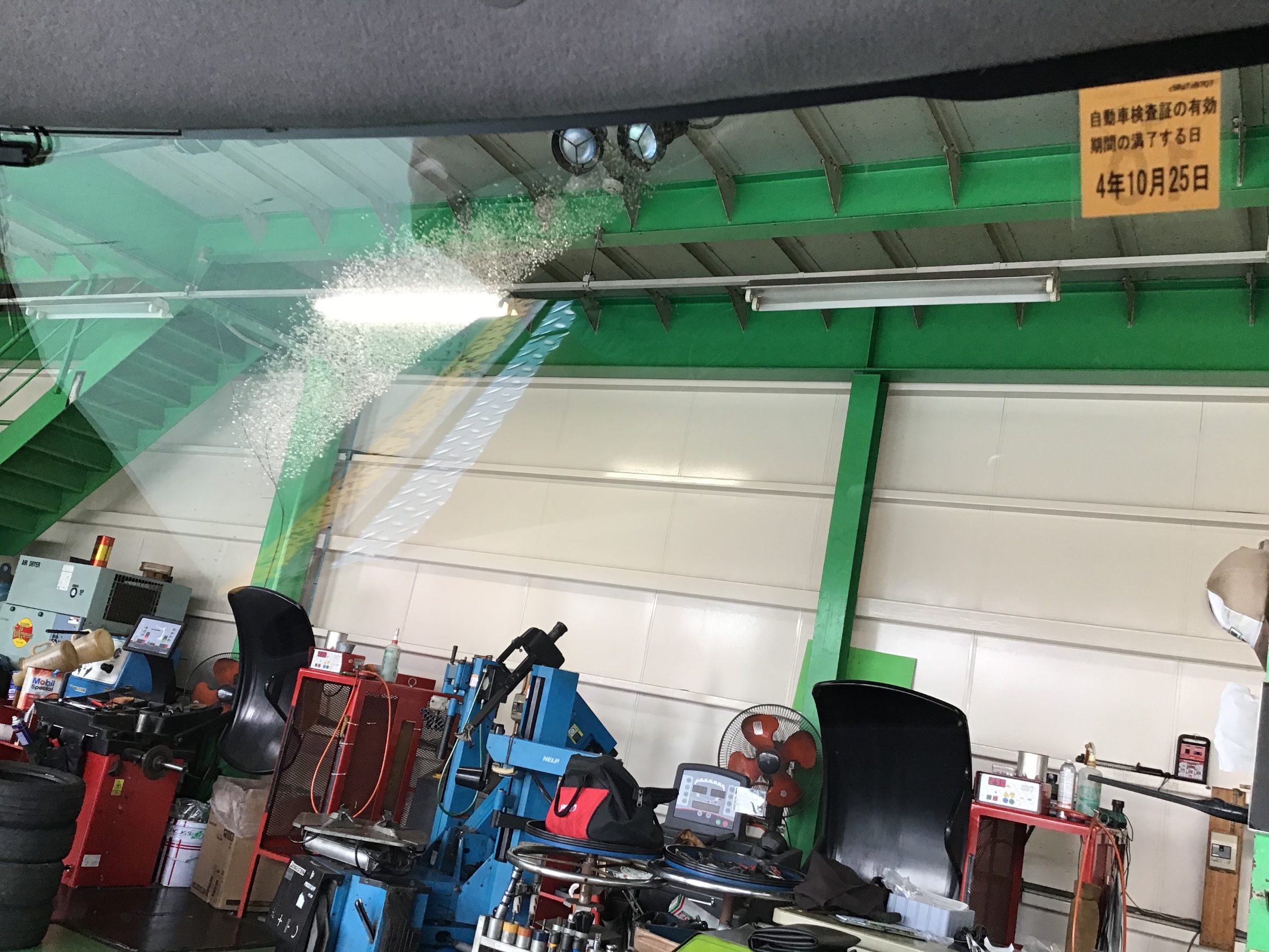 この時に霧吹きでフロントガラスを