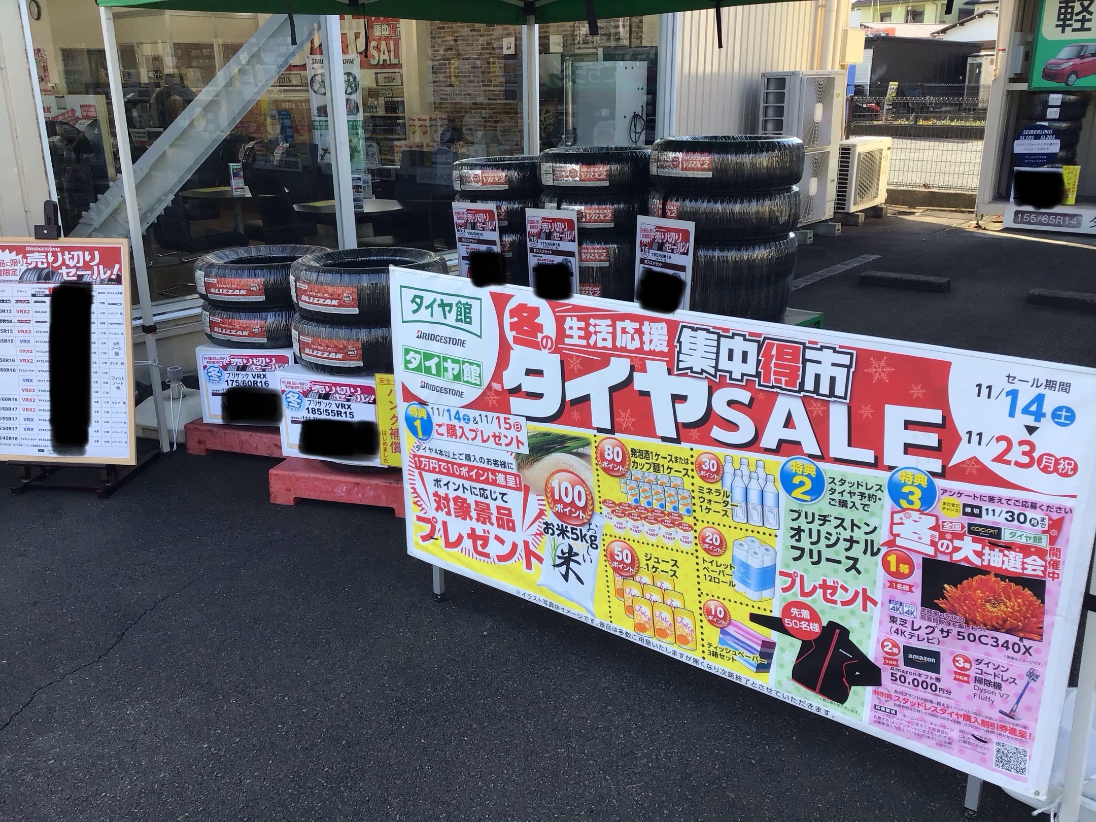 14、15日にタイヤ4本以上お買い上げで
