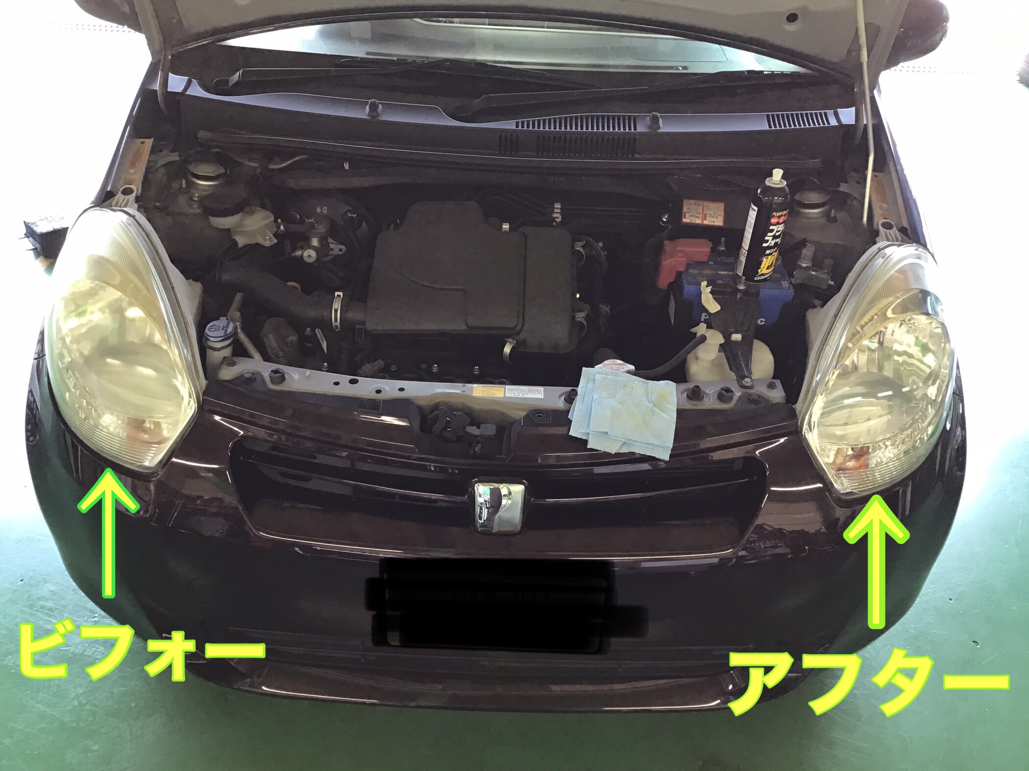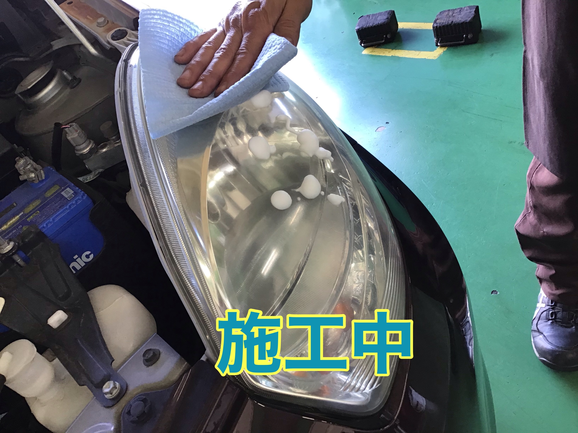 ヘッドライトコーティングの施工を