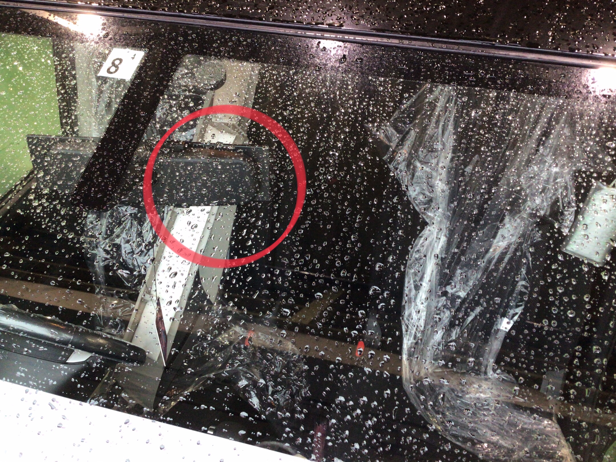 こんな感じに、ミラー後ろの邪魔にならない場所と