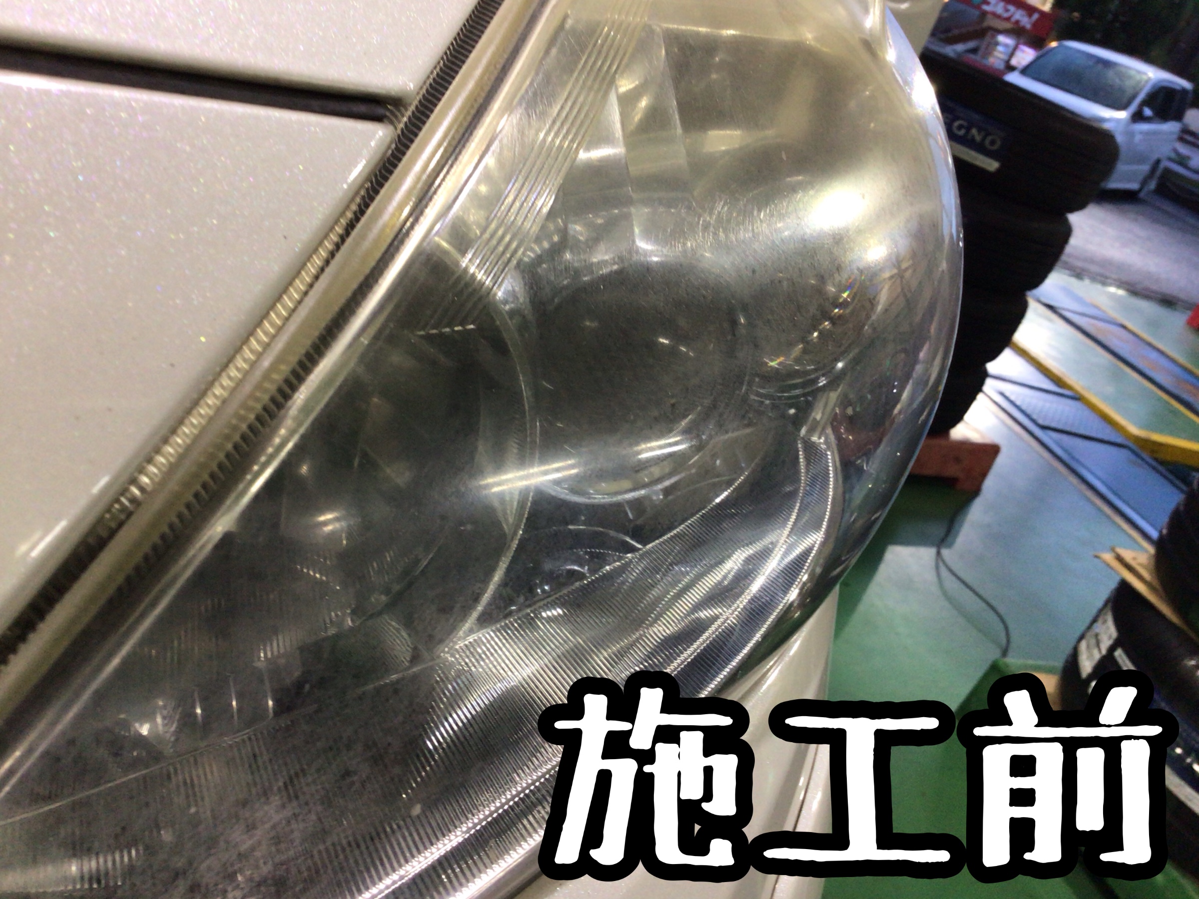 今回の車両もヘッドライトの黄ばみが見置られました。