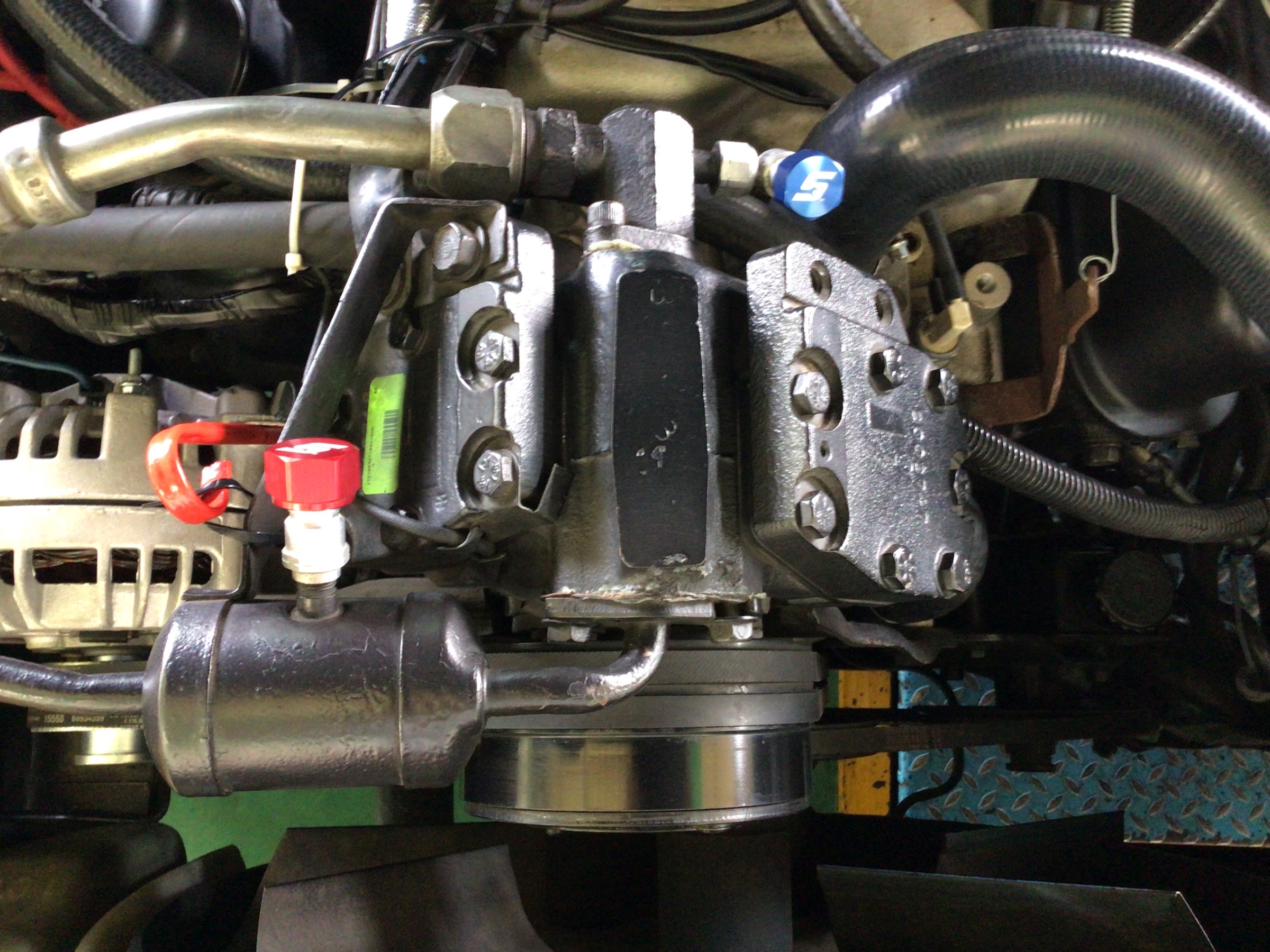 エアコン関係はエンジンルーム中央に設置しておりました。