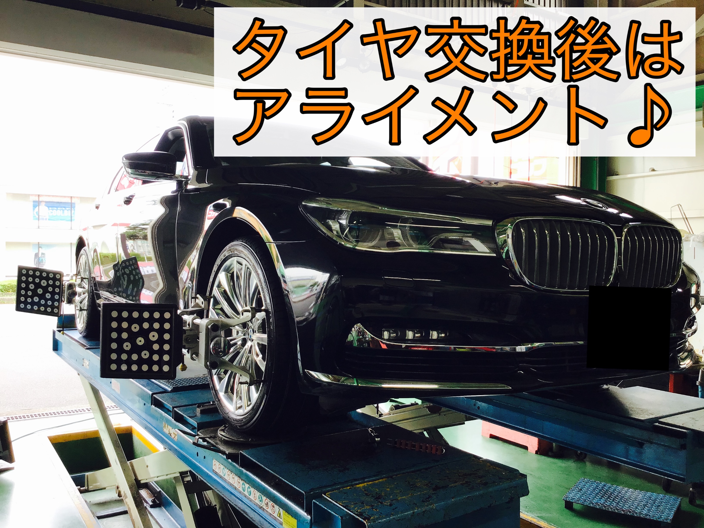 BMW 750i 純正ランフラットタイヤ交換&アライメント♪