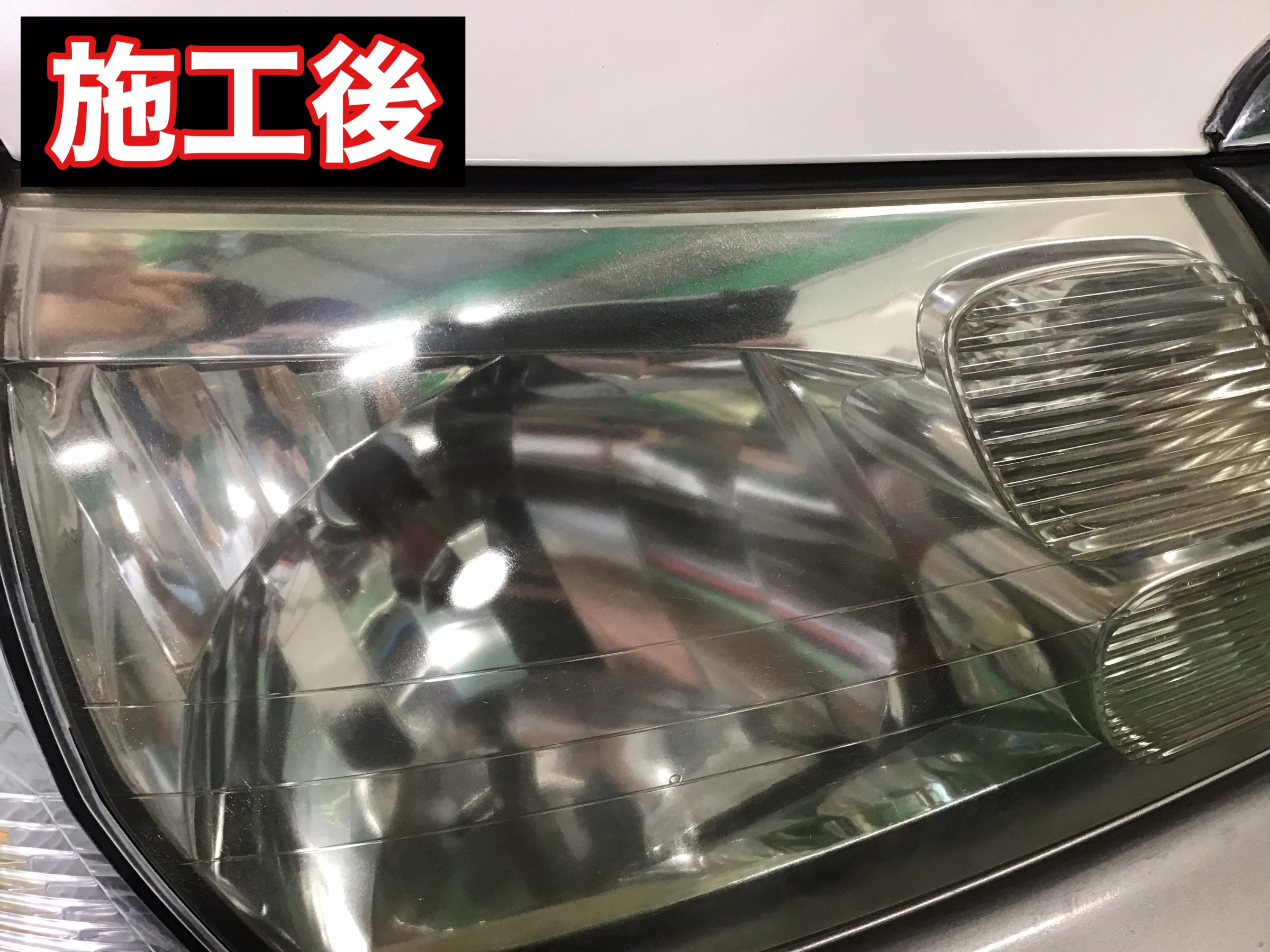 施工前と比べると表面の汚れ、黄ばみも取れ透明感が増していますね♪