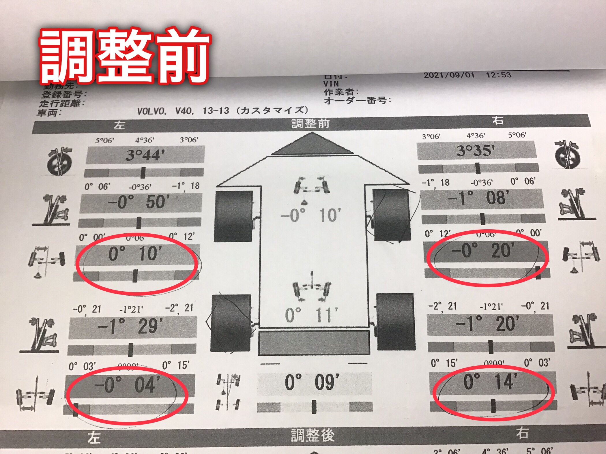 ボルボ V40 アライメント