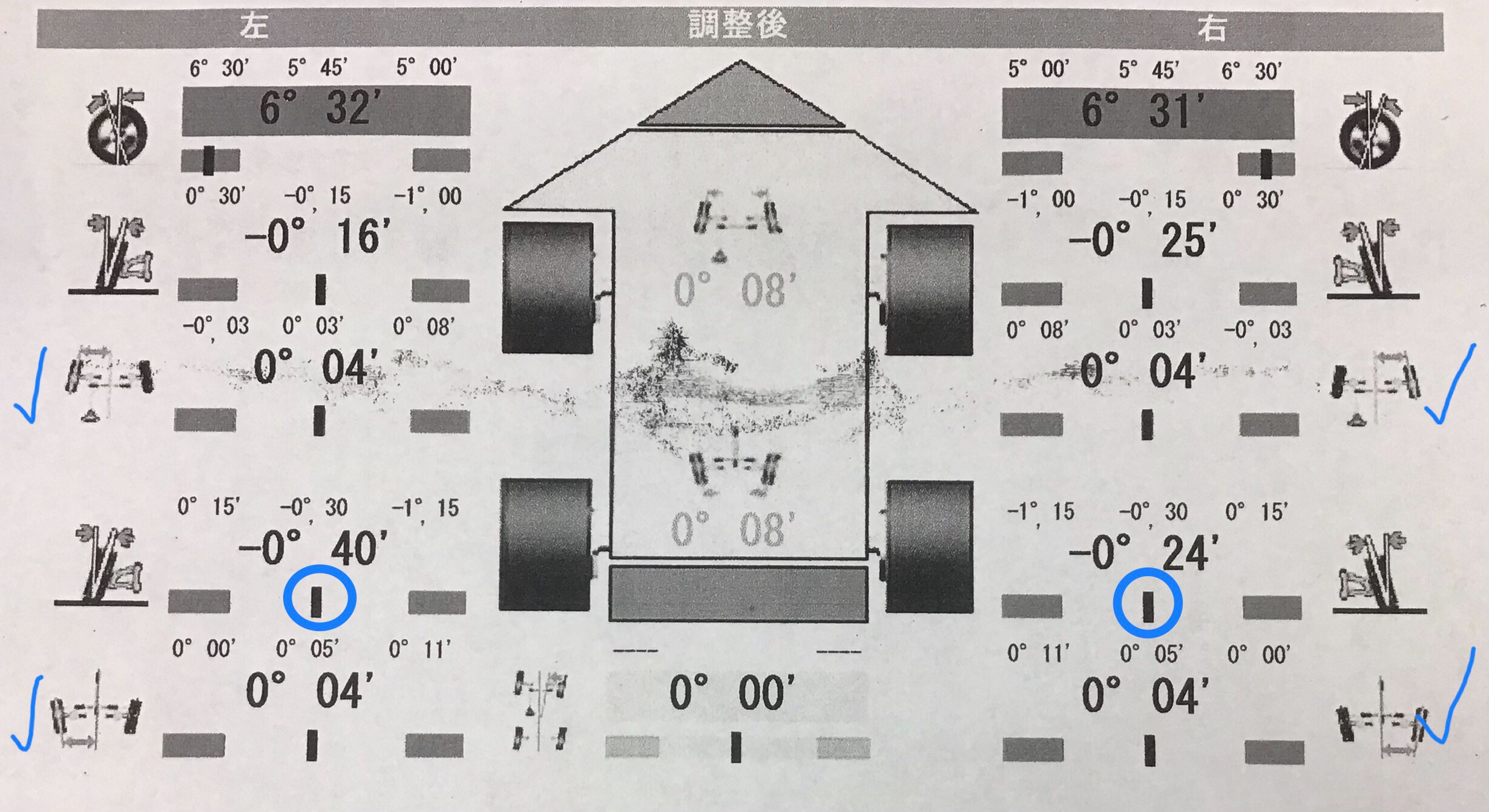 前後トー 4箇所、後ろキャンバー 2箇所